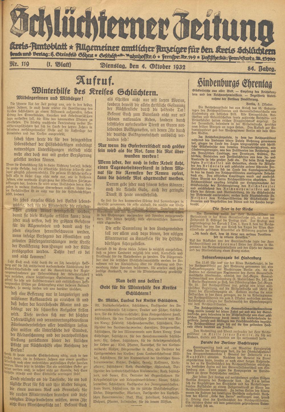 Schlüchterner Zeitung. 1887-1941