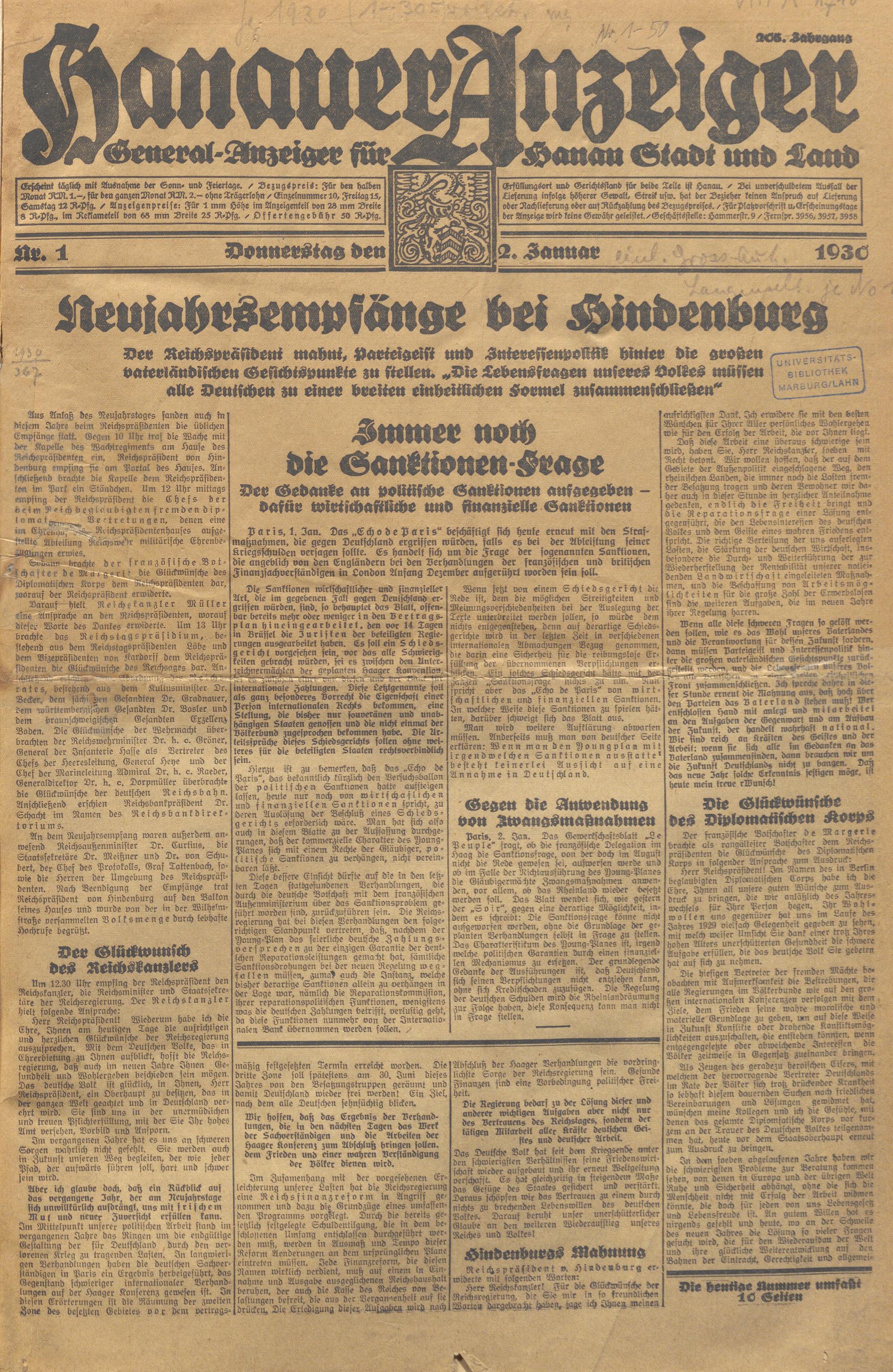 Hanauer Anzeiger. 1872-1941