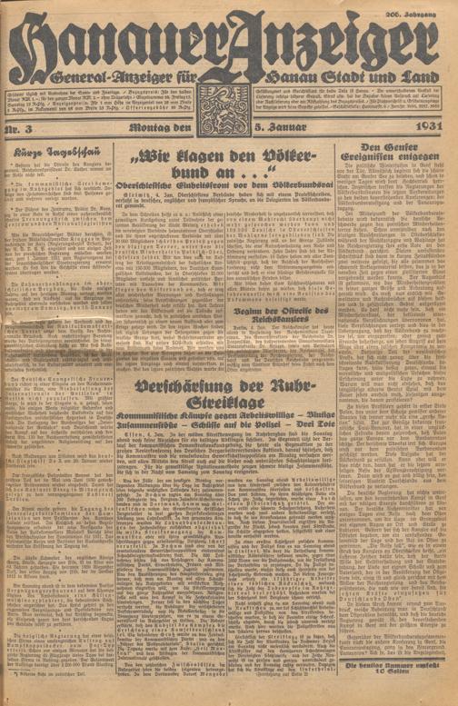 Hanauer Anzeiger. 1872-1941