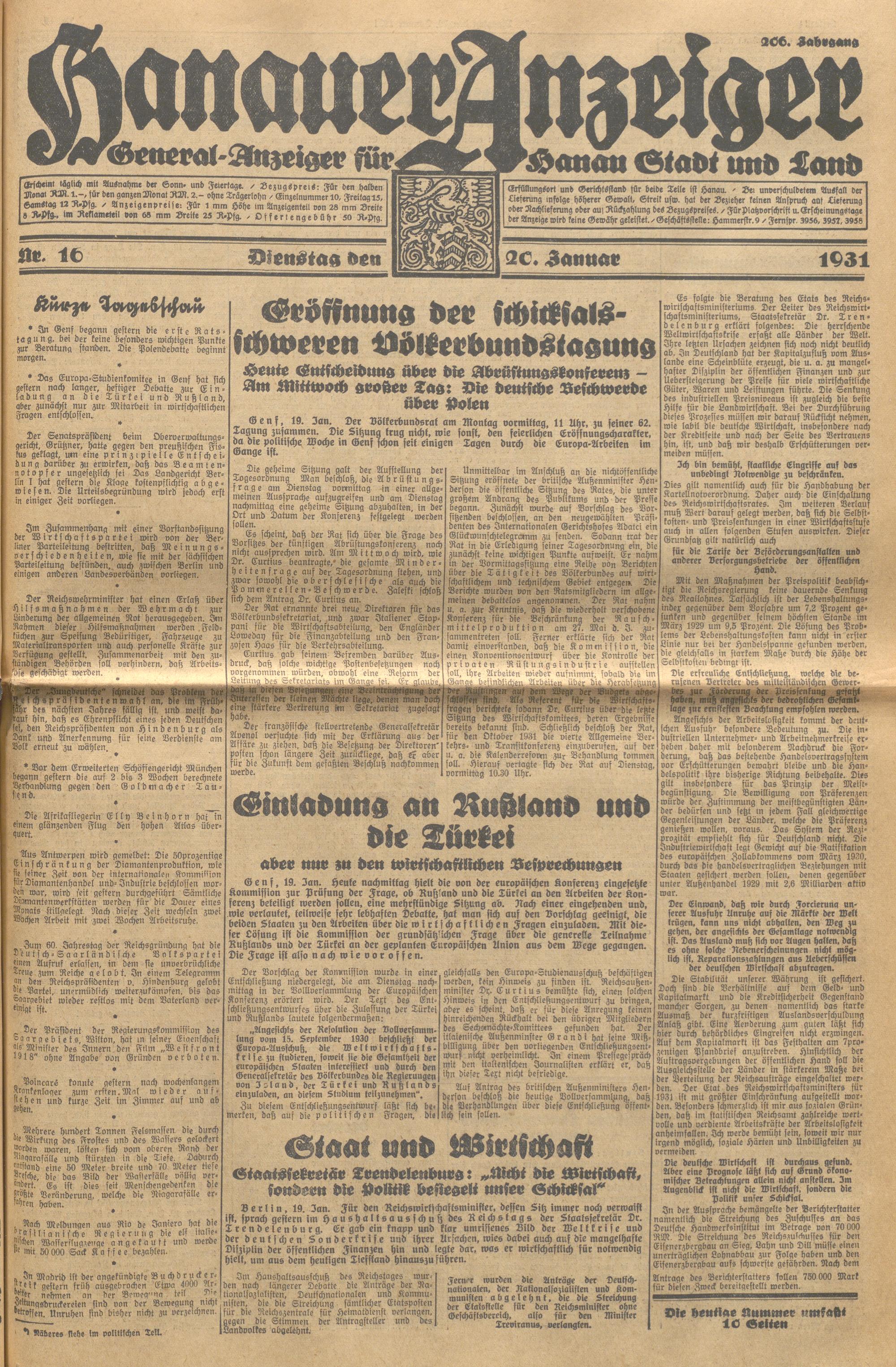 Hanauer Anzeiger. 1872-1941