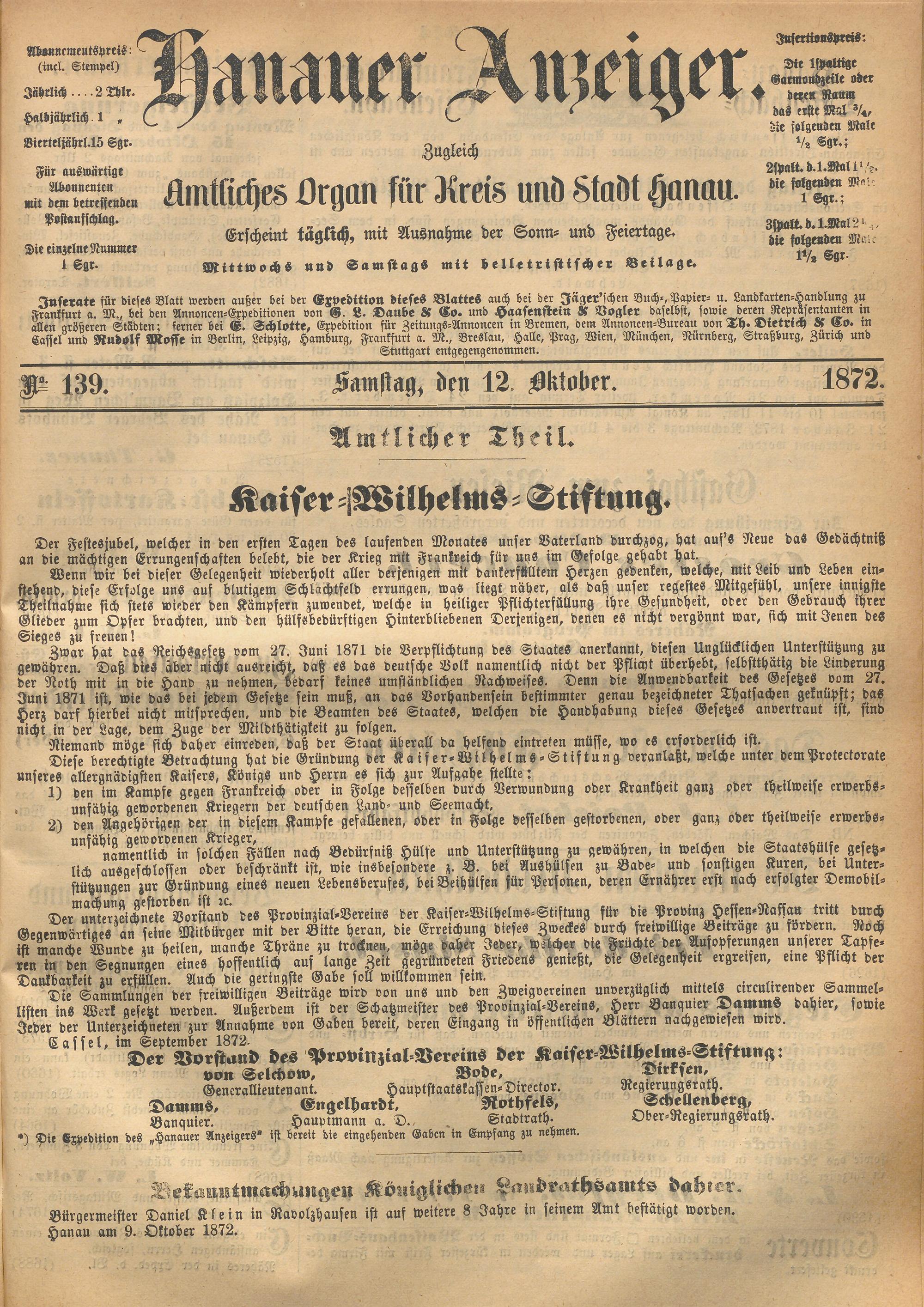 Hanauer Anzeiger. 1872-1941