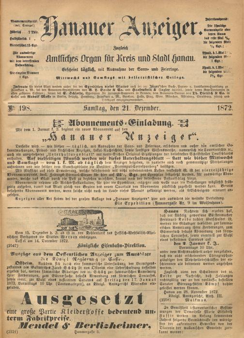 Hanauer Anzeiger. 1872-1941