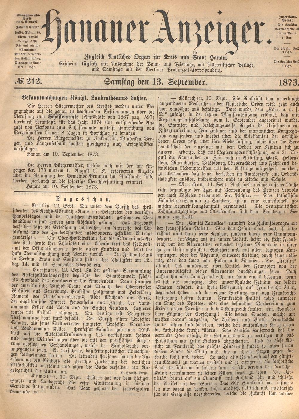 Hanauer Anzeiger. 1872-1941