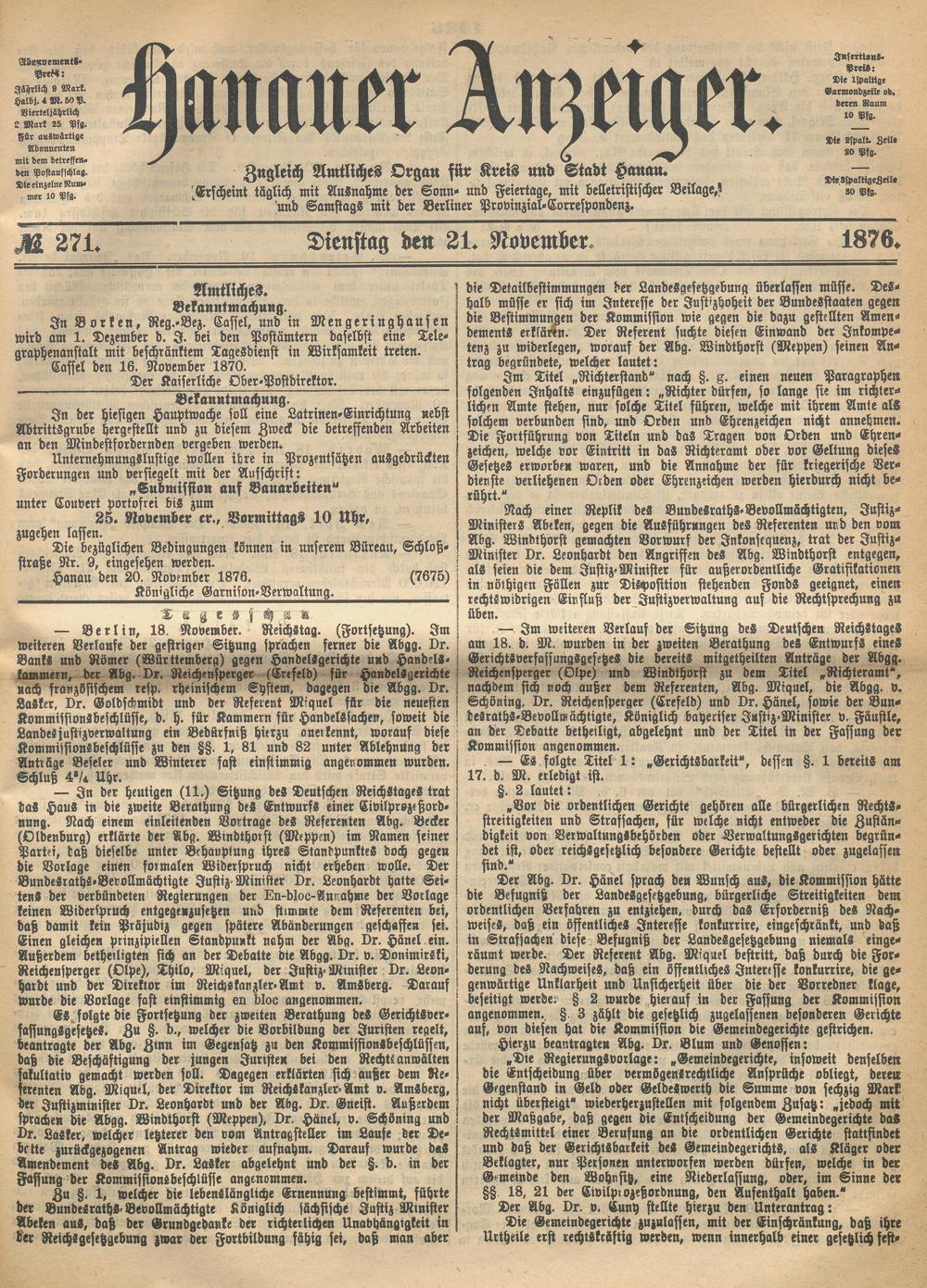 Hanauer Anzeiger. 1872-1941