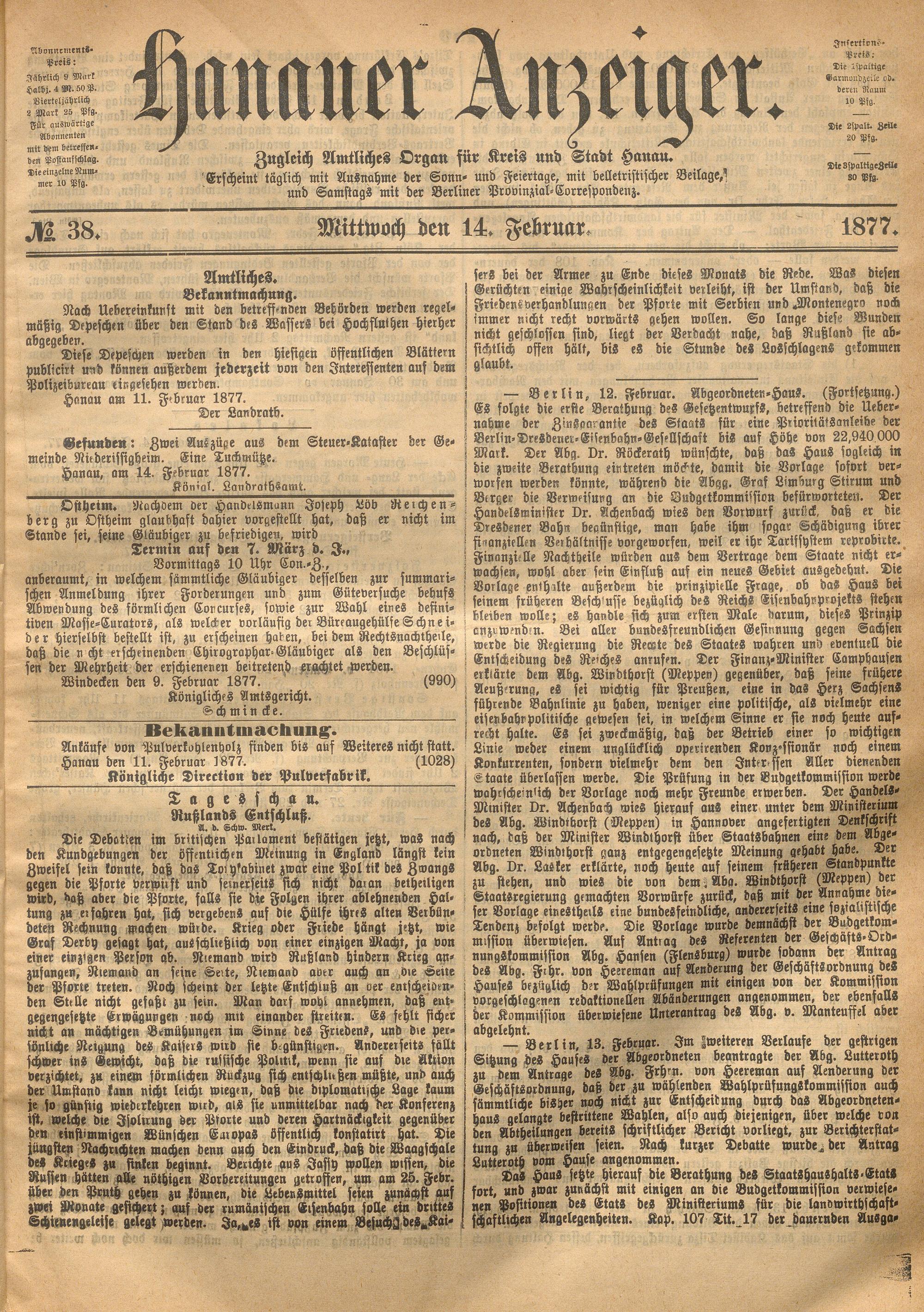 Hanauer Anzeiger. 1872-1941
