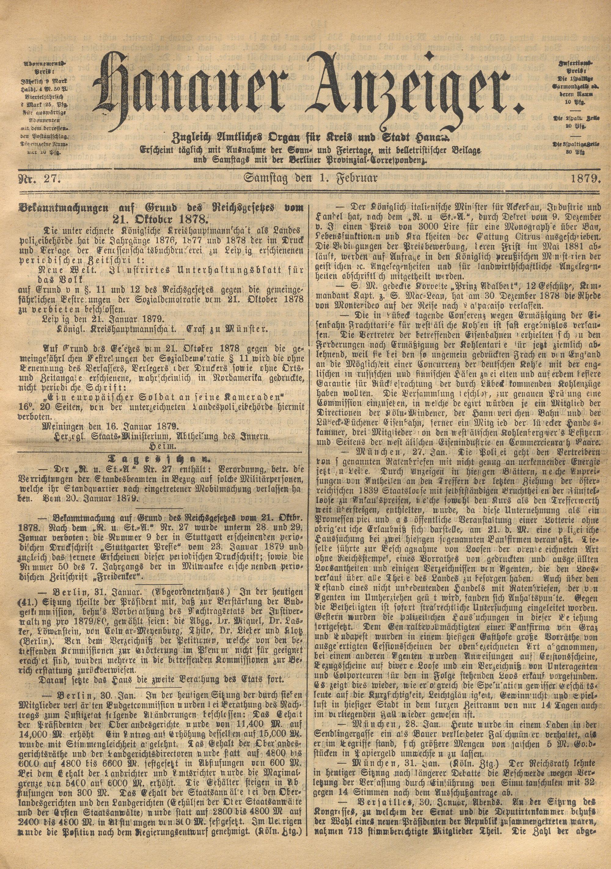 Hanauer Anzeiger. 1872-1941