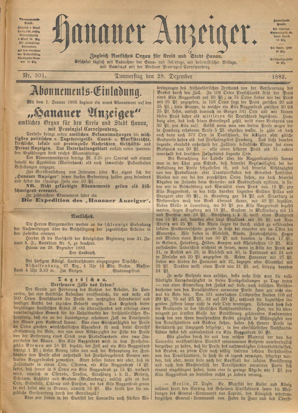 Hanauer Anzeiger. 1872-1941