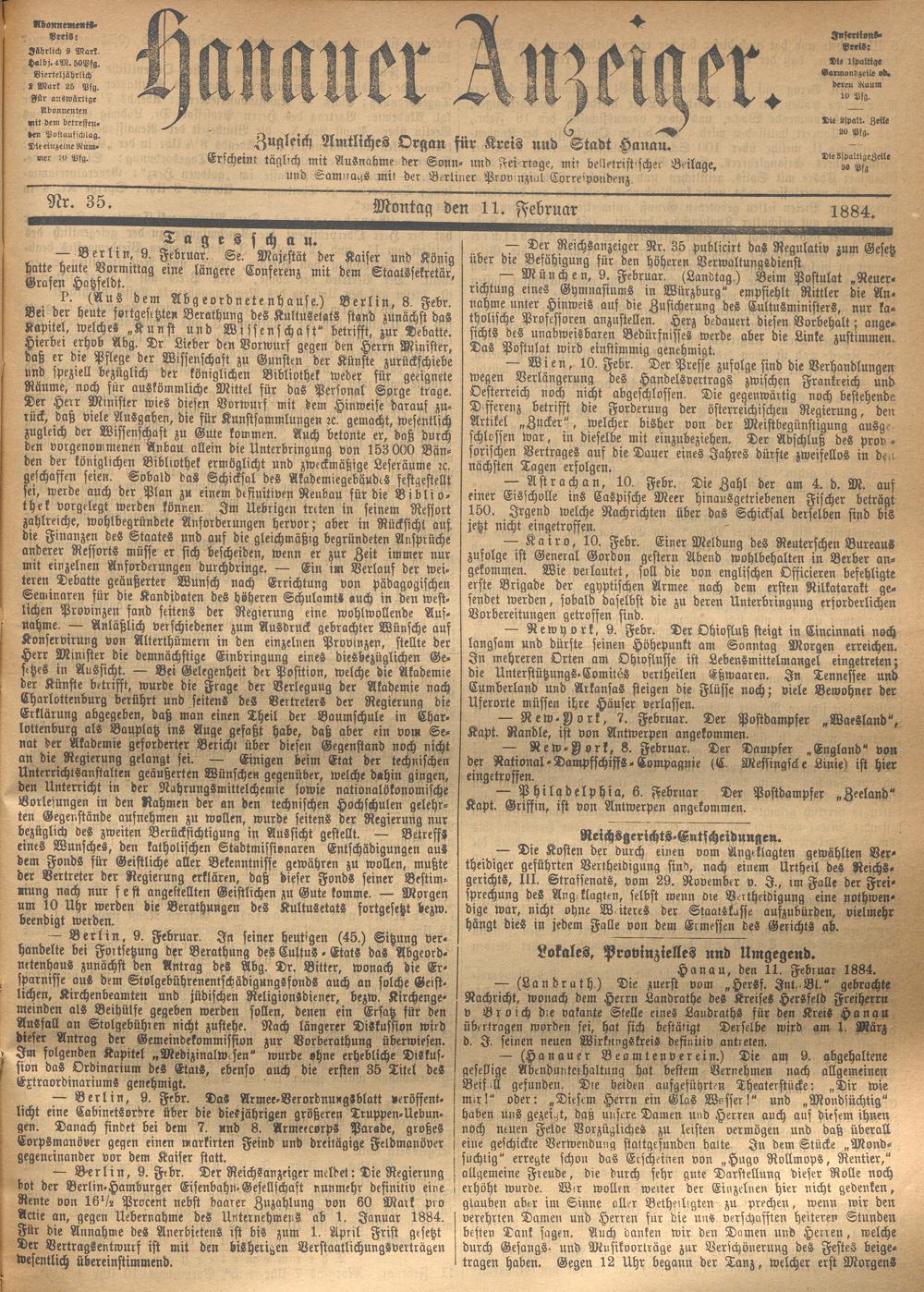 Hanauer Anzeiger. 1872-1941