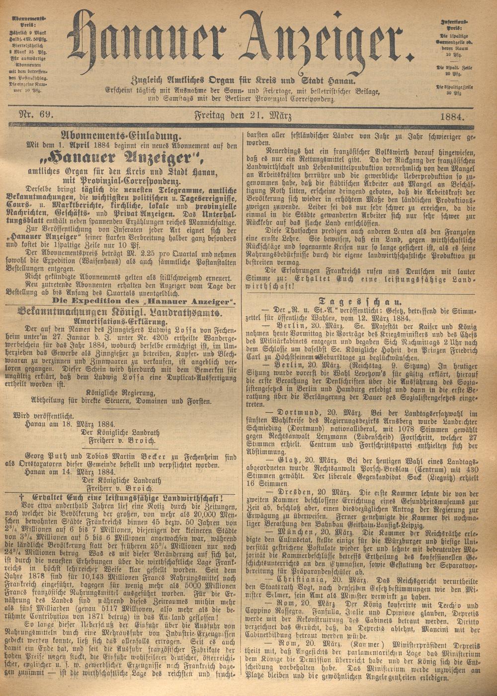 Hanauer Anzeiger. 1872-1941