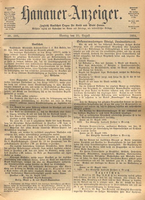 Hanauer Anzeiger. 1872-1941