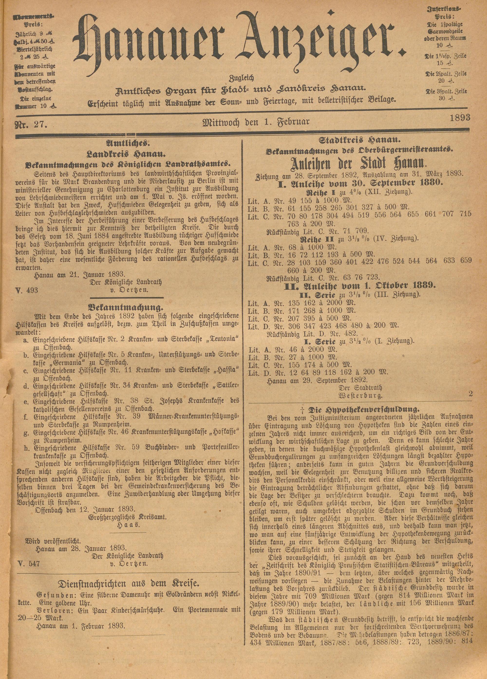 Hanauer Anzeiger. 1872-1941