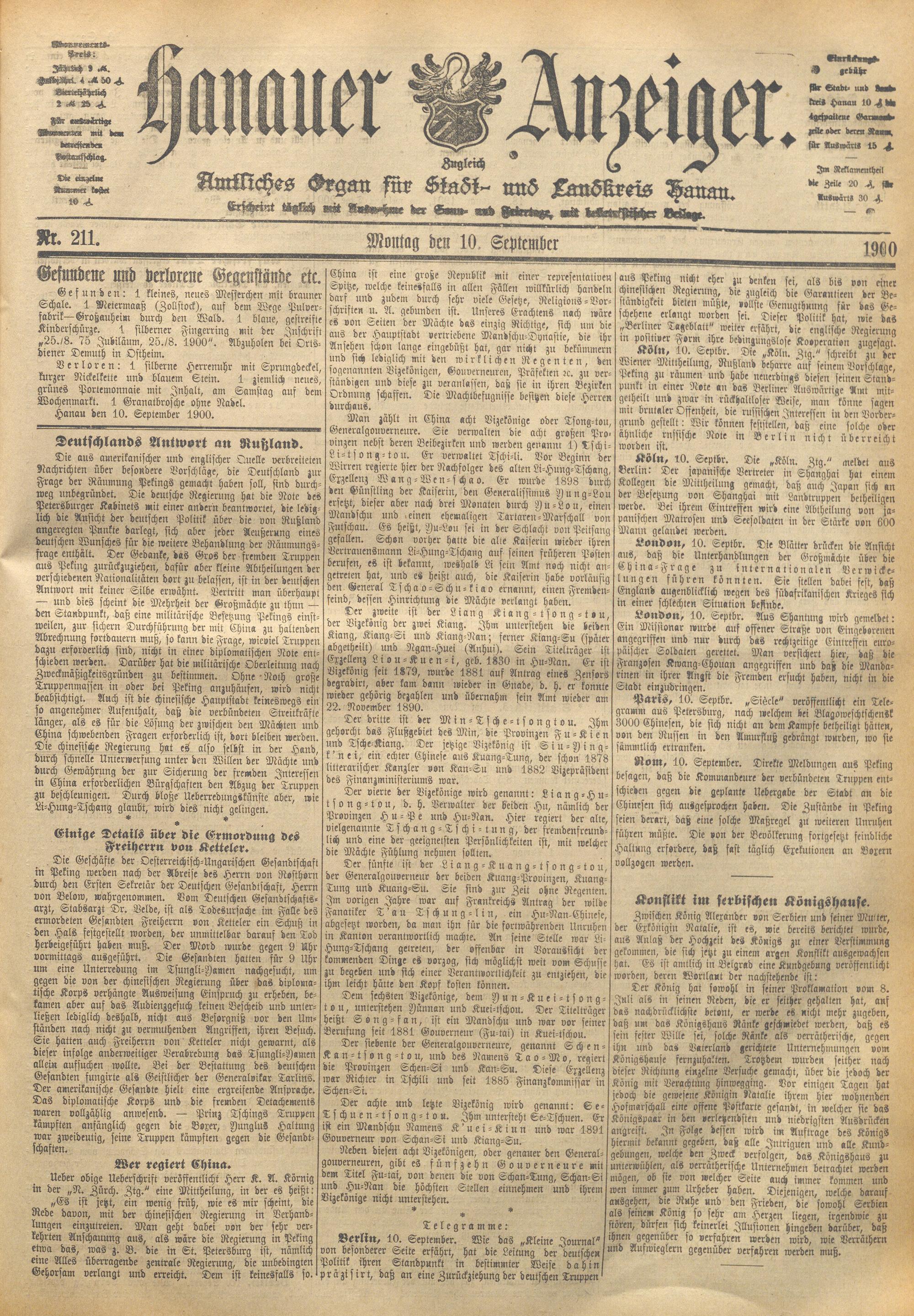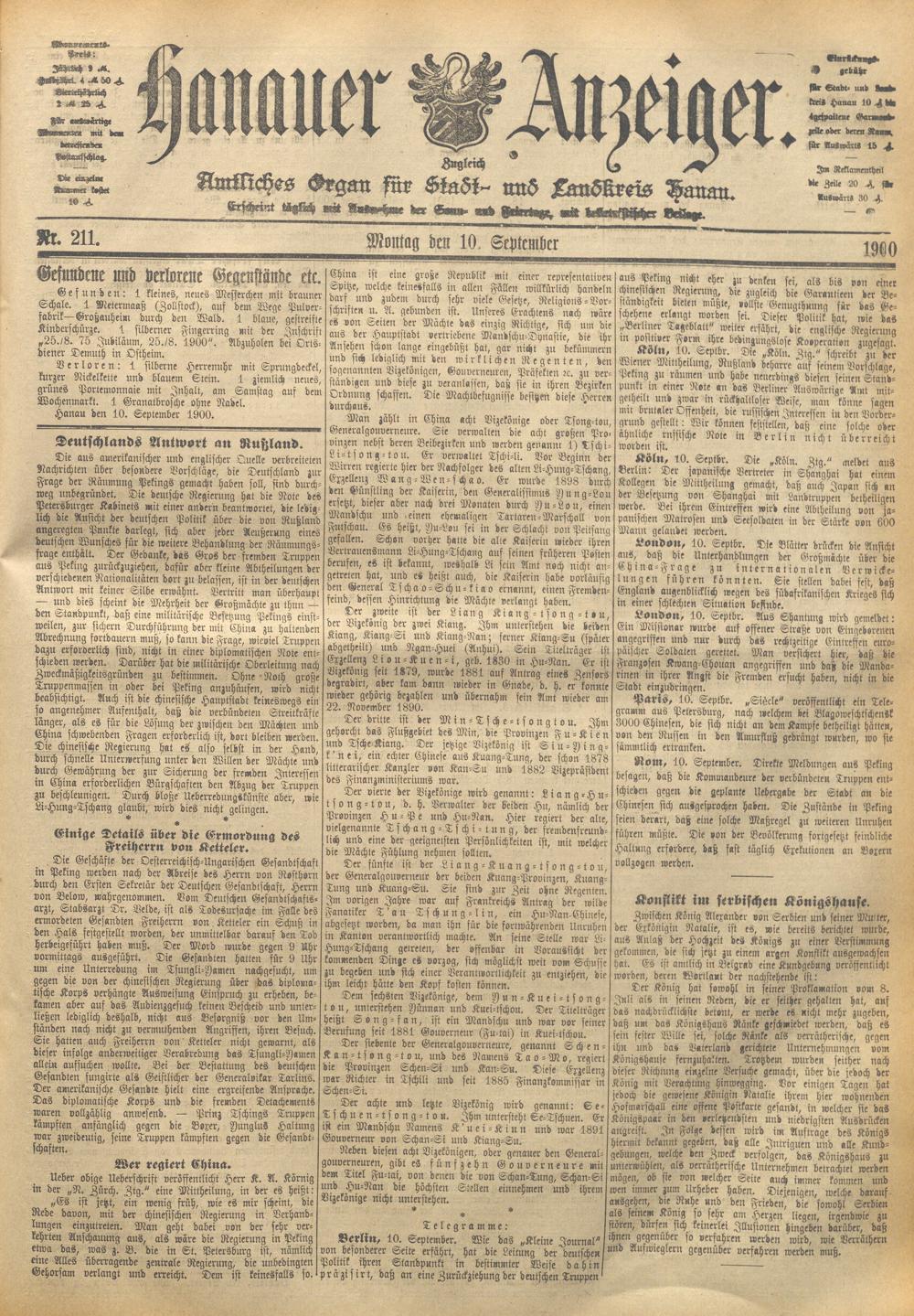 Hanauer Anzeiger. 1872-1941