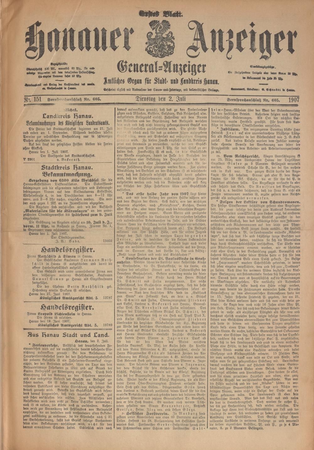 Hanauer Anzeiger. 1872-1941