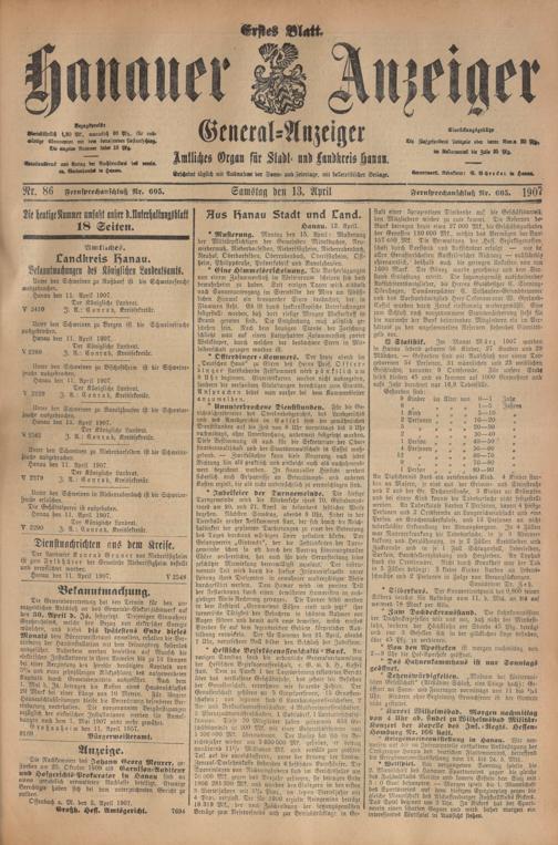 Hanauer Anzeiger. 1872-1941