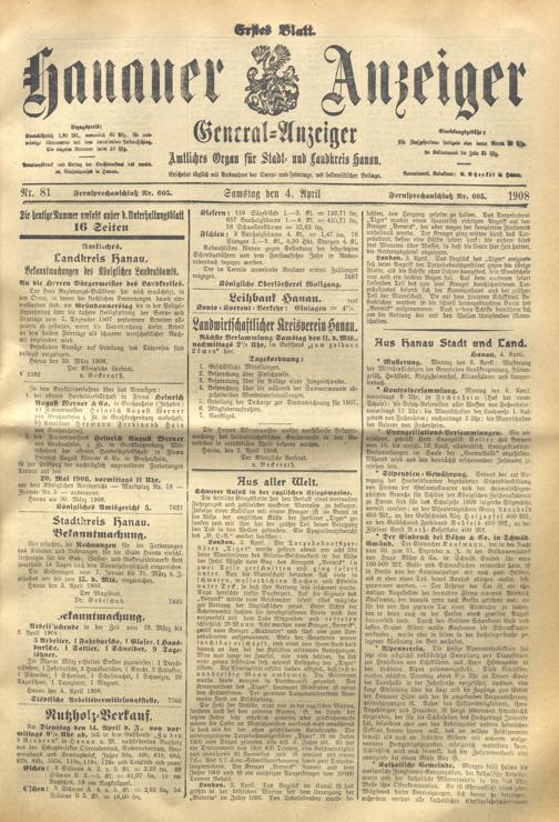 Hanauer Anzeiger. 1872-1941