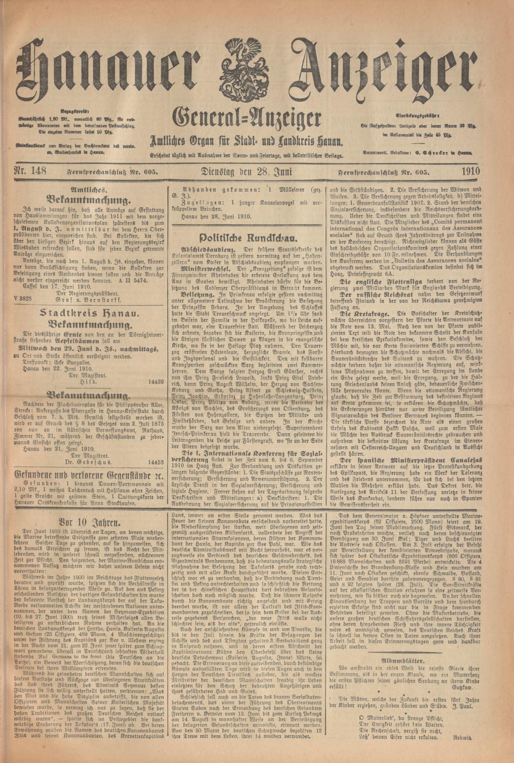 Hanauer Anzeiger. 1872-1941