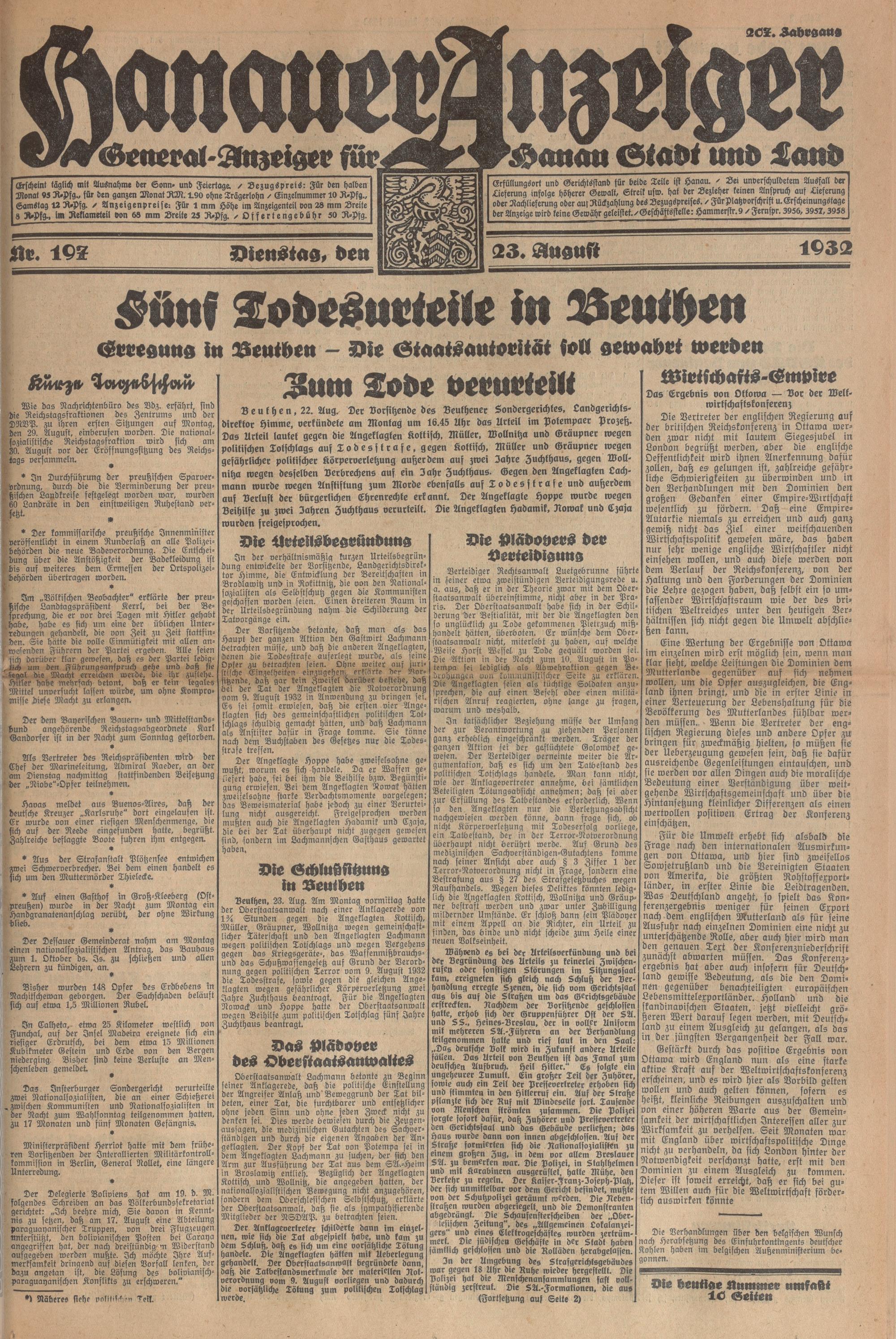 Hanauer Anzeiger. 1872-1941
