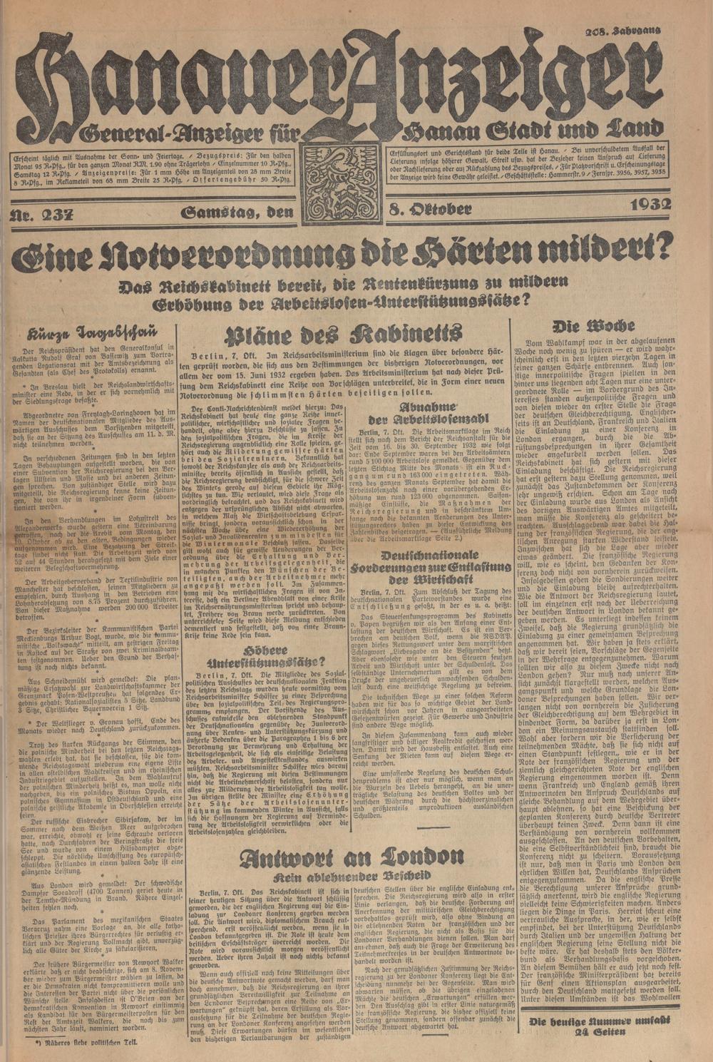 Hanauer Anzeiger. 1872-1941