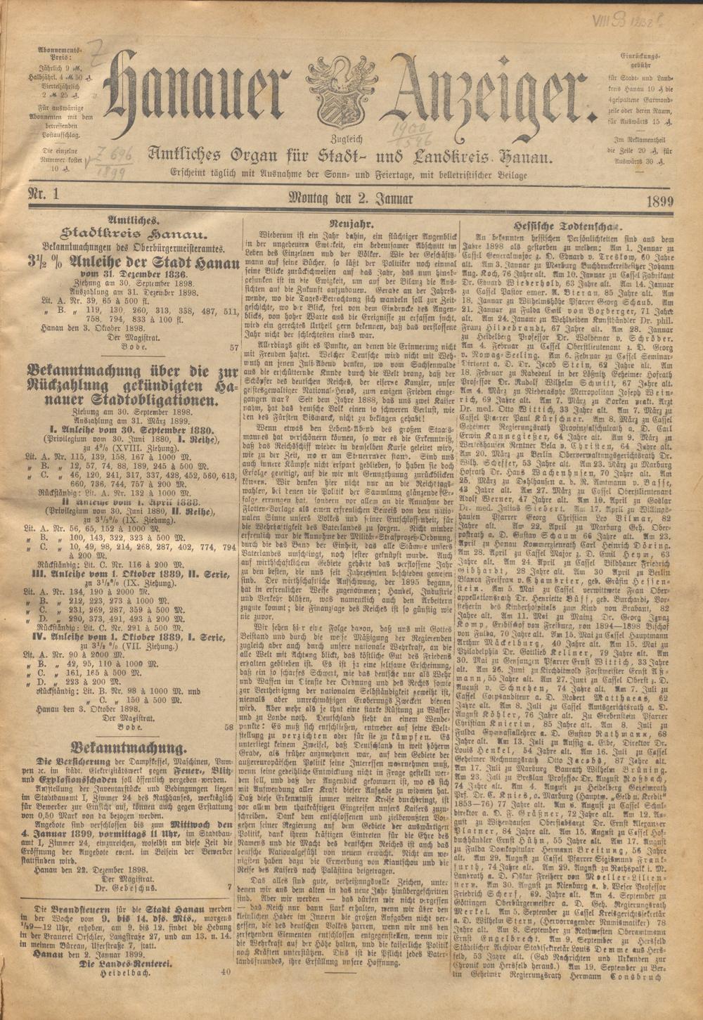 Hanauer Anzeiger. 1872-1941