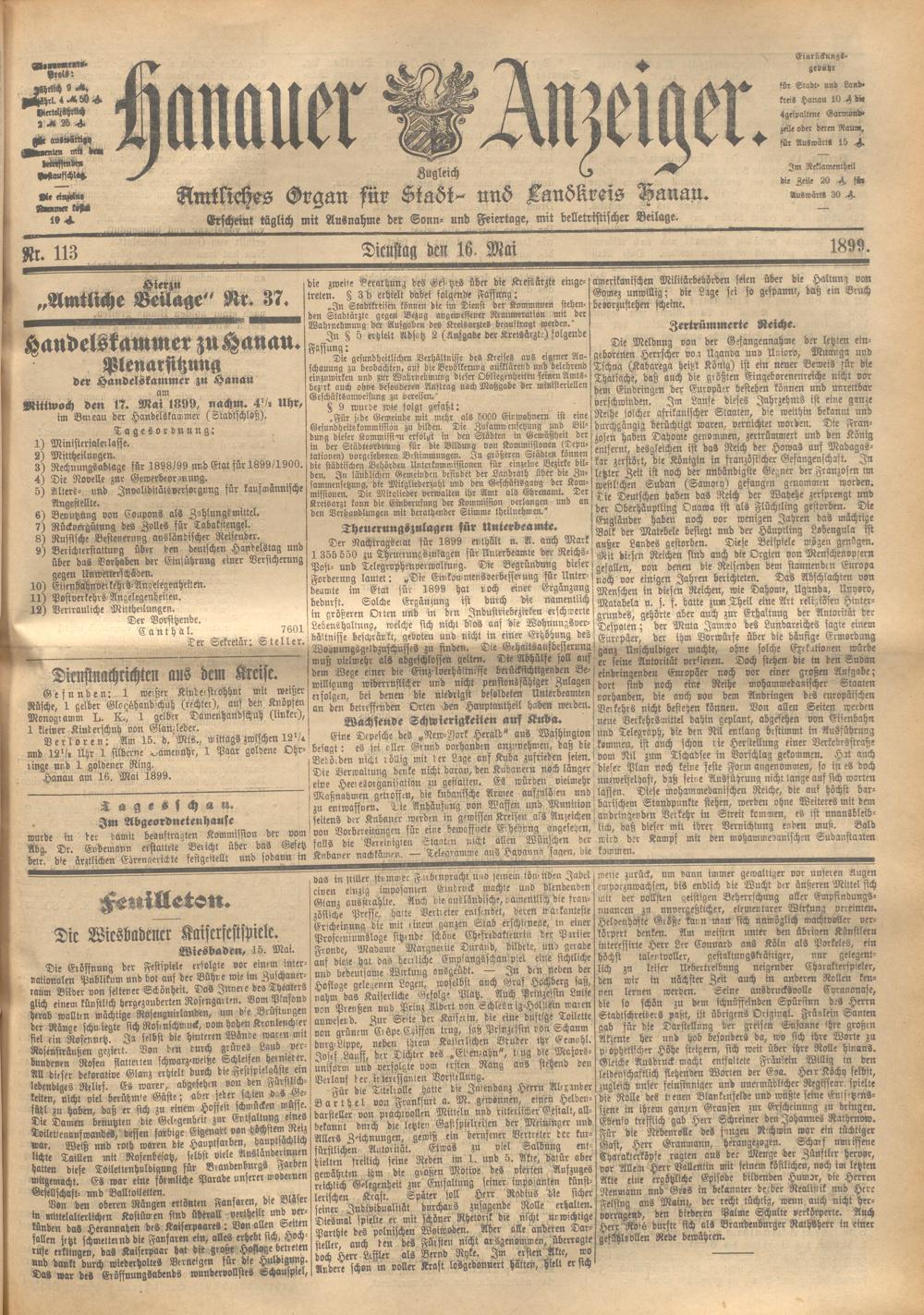 Hanauer Anzeiger. 1872-1941