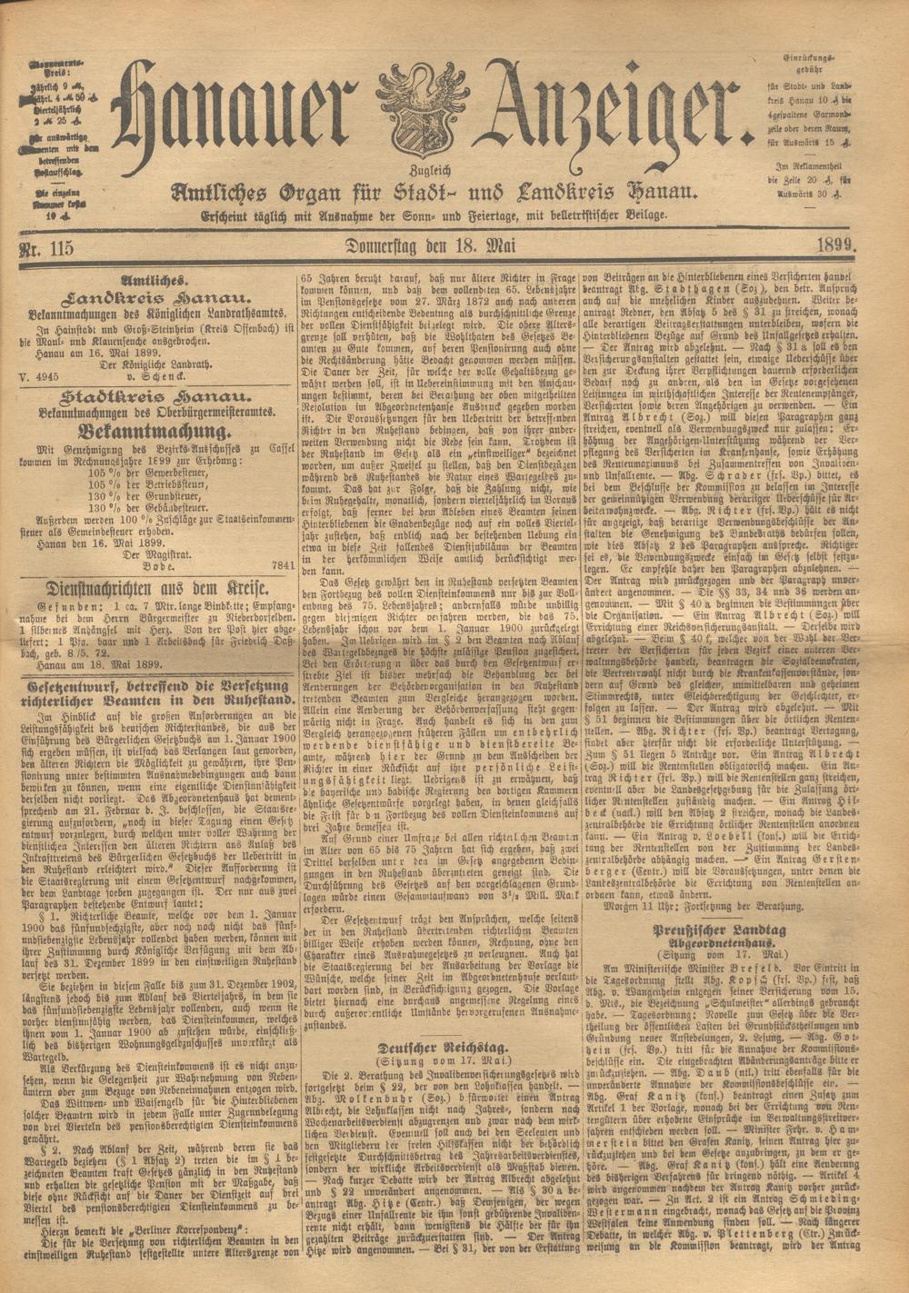 Hanauer Anzeiger. 1872-1941