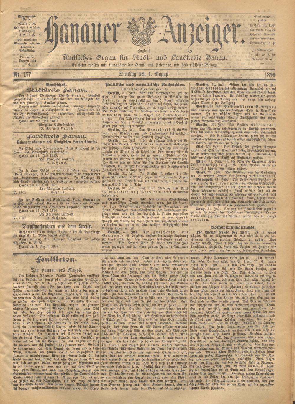 Hanauer Anzeiger. 1872-1941