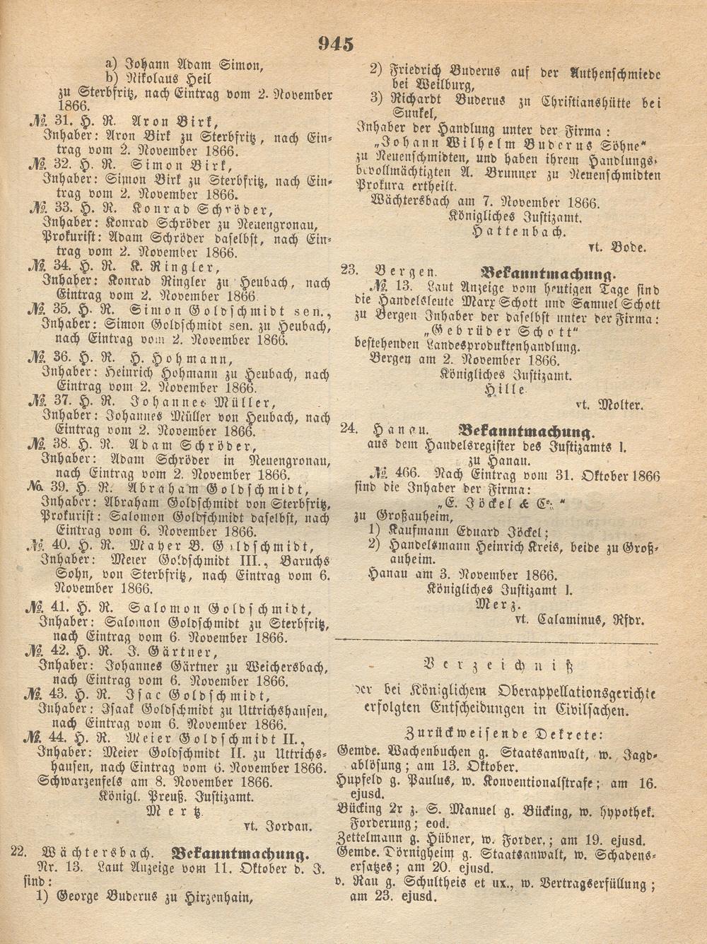 Wochenblatt für den Regierungsbezirk Hanau. 1866-1867