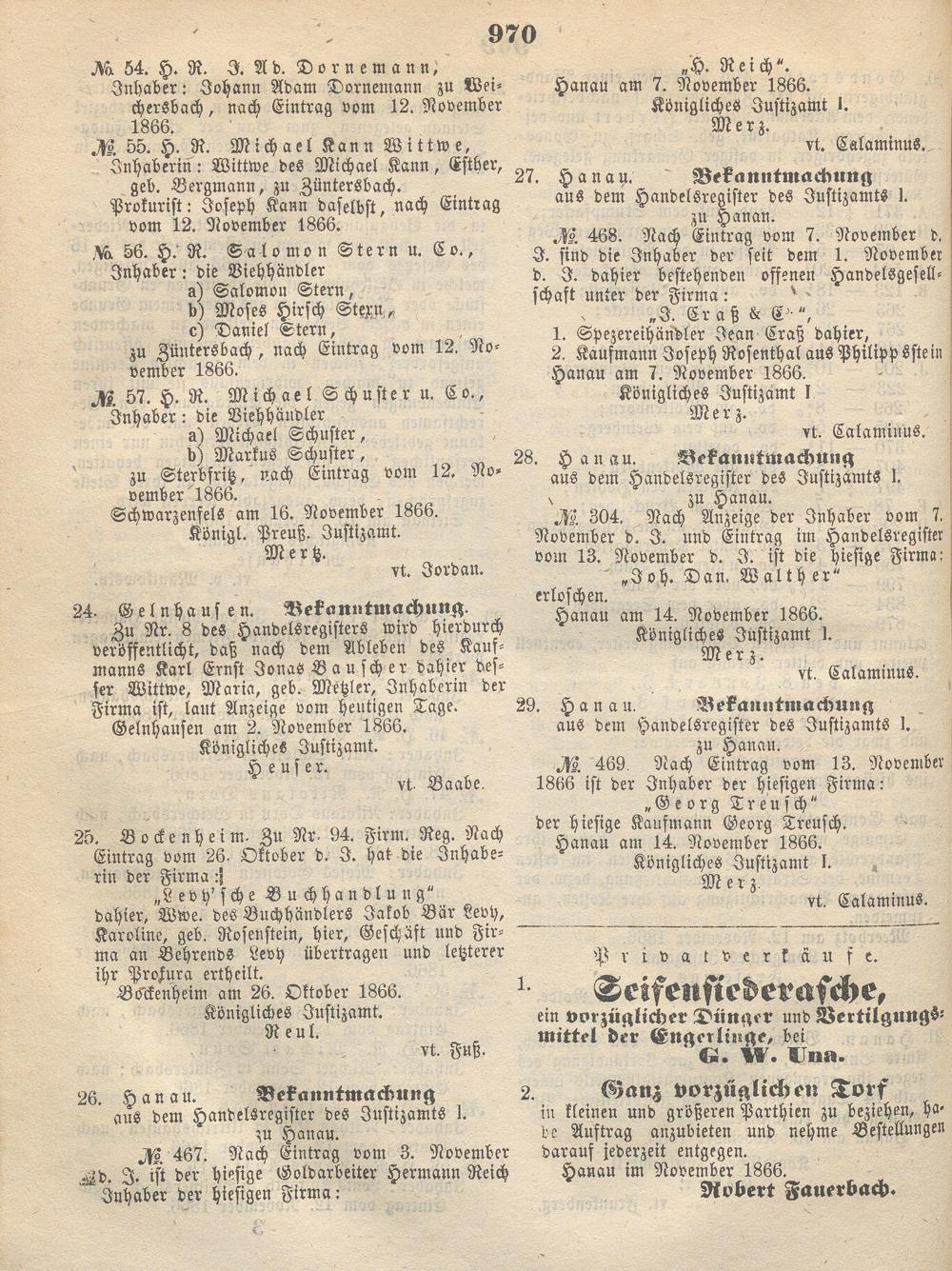 Wochenblatt für den Regierungsbezirk Hanau. 1866-1867