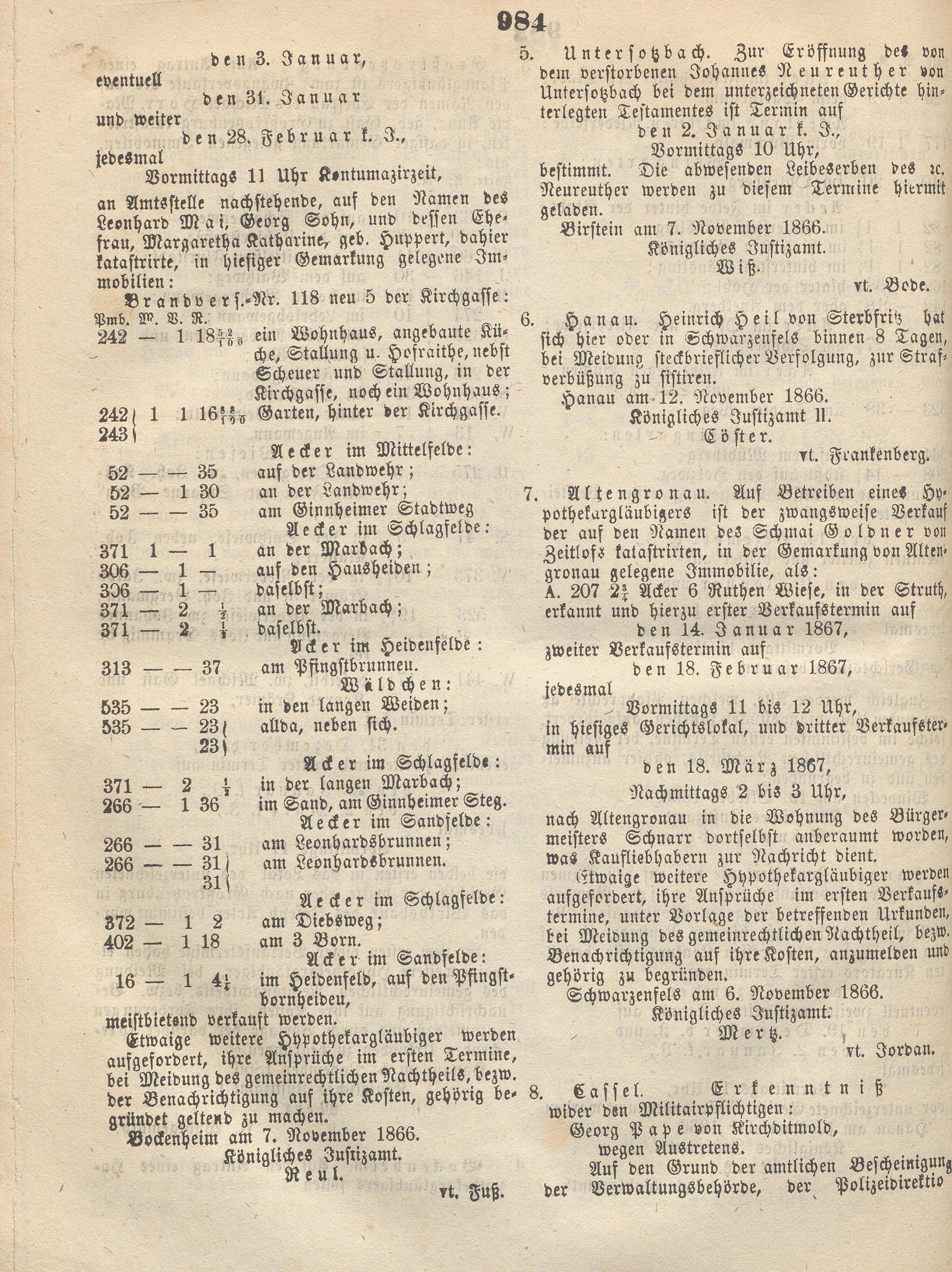 Wochenblatt für den Regierungsbezirk Hanau. 1866-1867