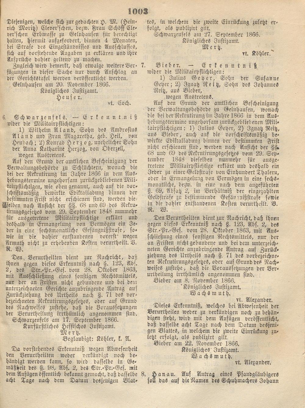 Wochenblatt für den Regierungsbezirk Hanau. 1866-1867