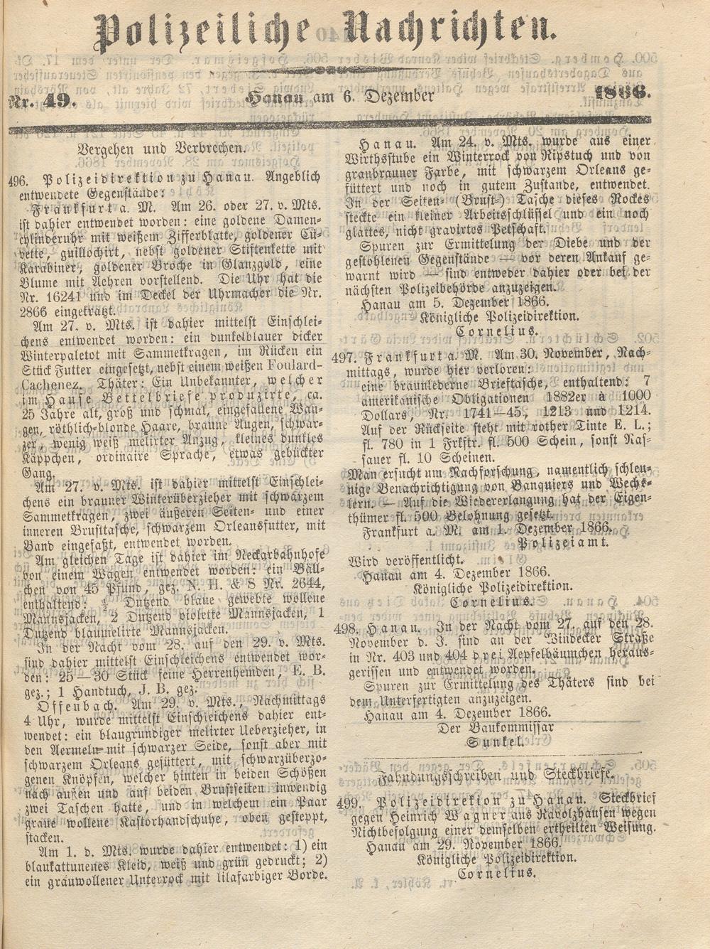 Wochenblatt für den Regierungsbezirk Hanau. 1866-1867
