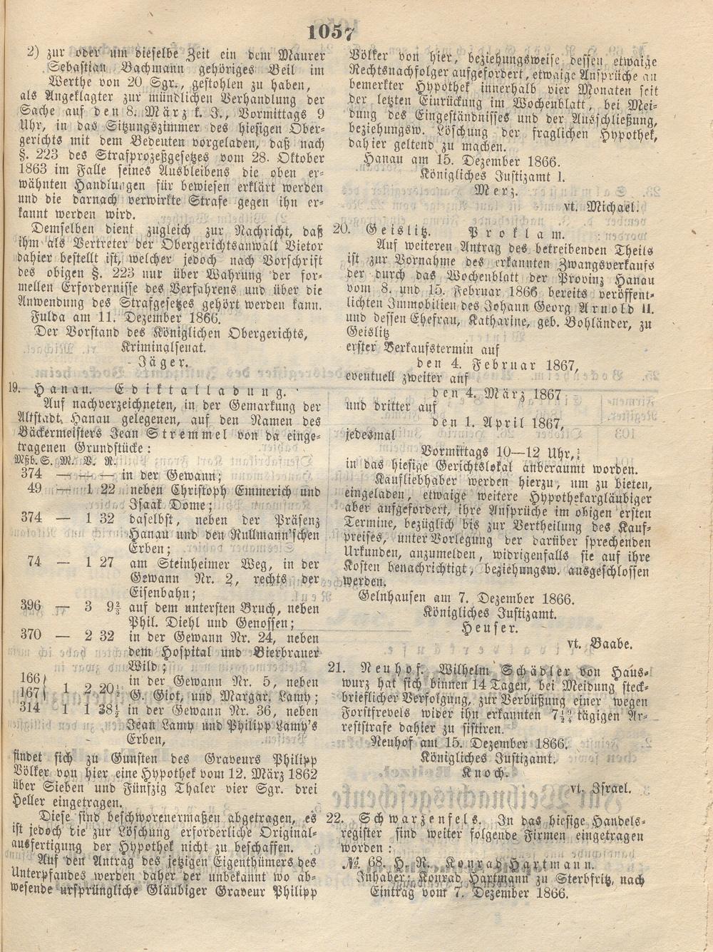 Wochenblatt für den Regierungsbezirk Hanau. 1866-1867