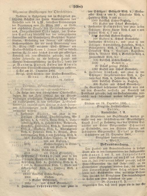 Wochenblatt für den Regierungsbezirk Hanau. 1866-1867