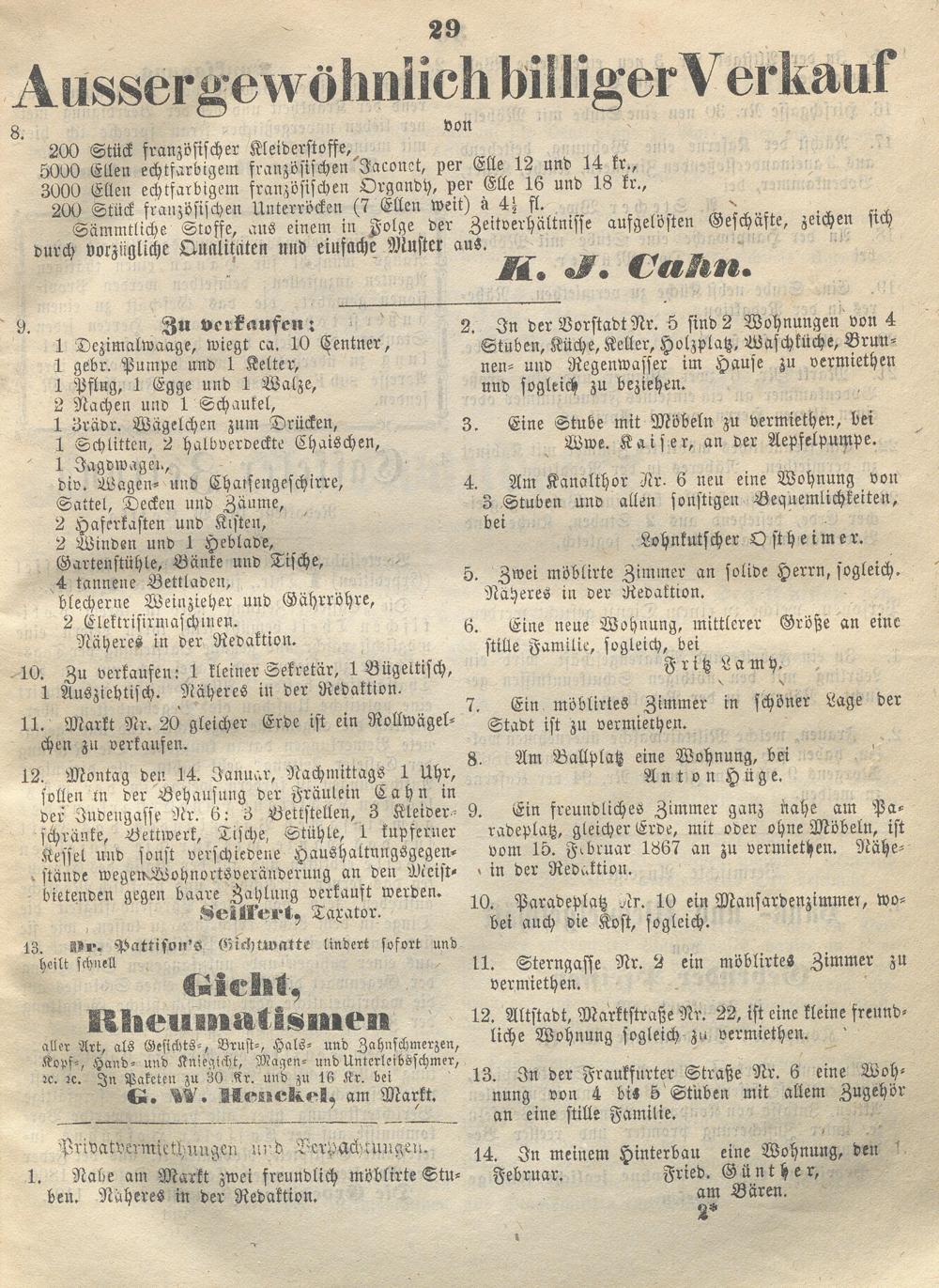 Wochenblatt für den Regierungsbezirk Hanau. 1866-1867
