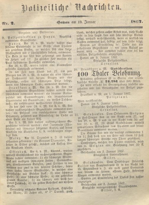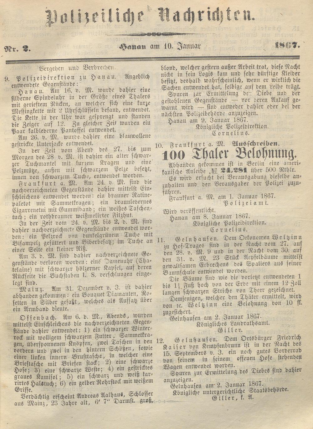 Wochenblatt für den Regierungsbezirk Hanau. 1866-1867