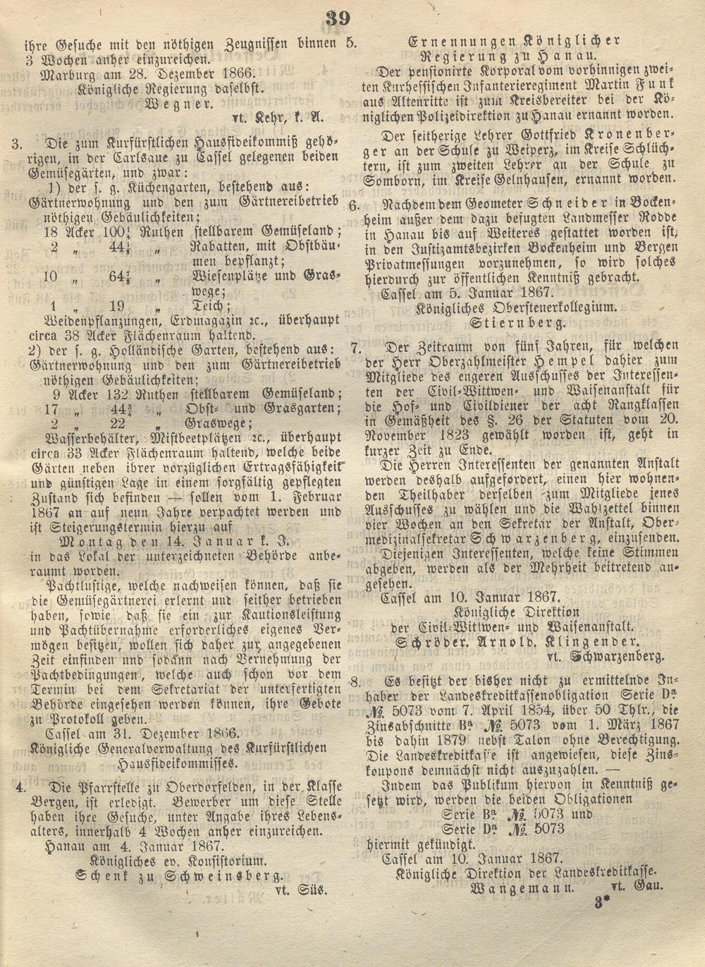 Wochenblatt für den Regierungsbezirk Hanau. 1866-1867