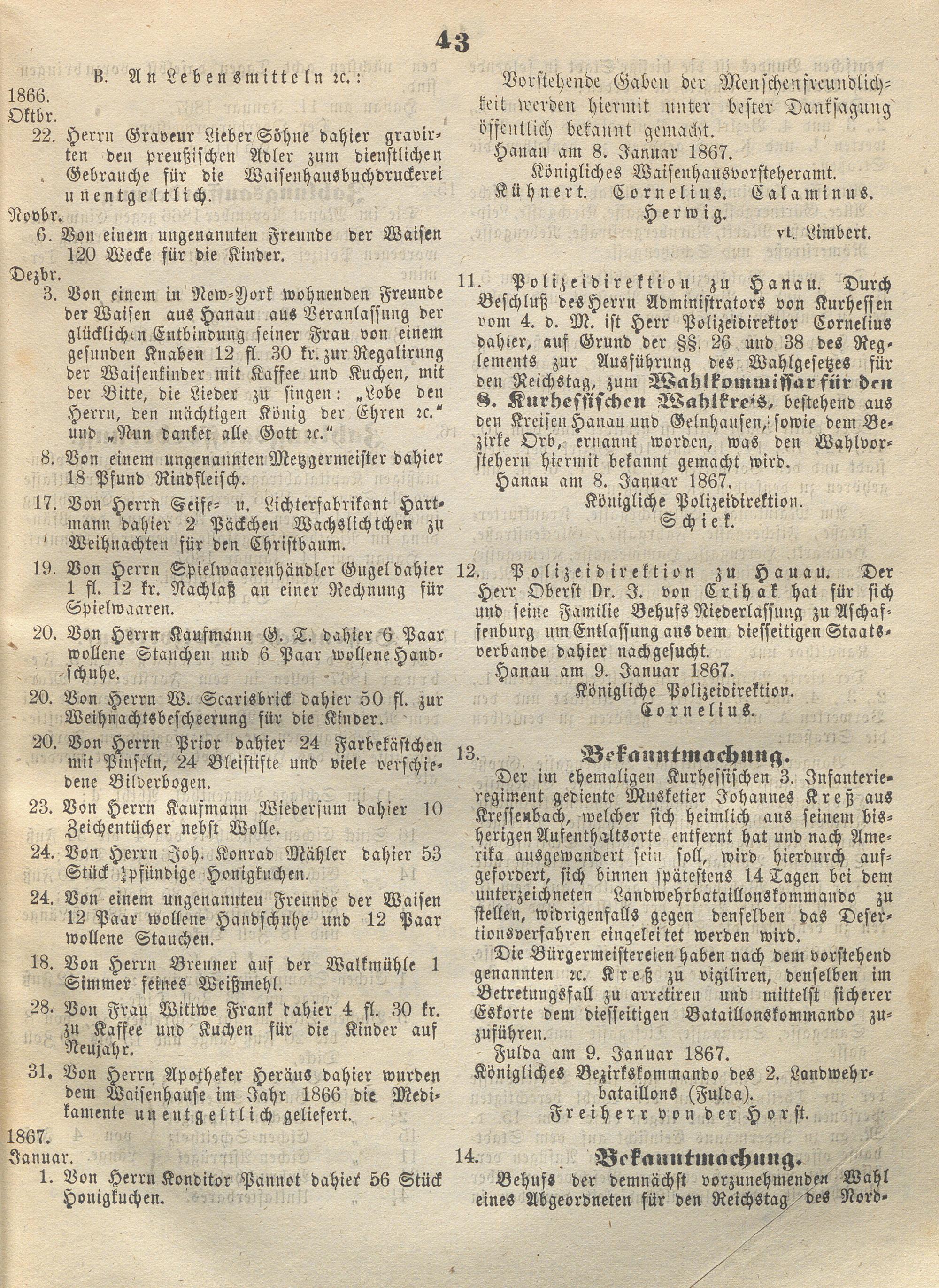 Wochenblatt für den Regierungsbezirk Hanau. 1866-1867