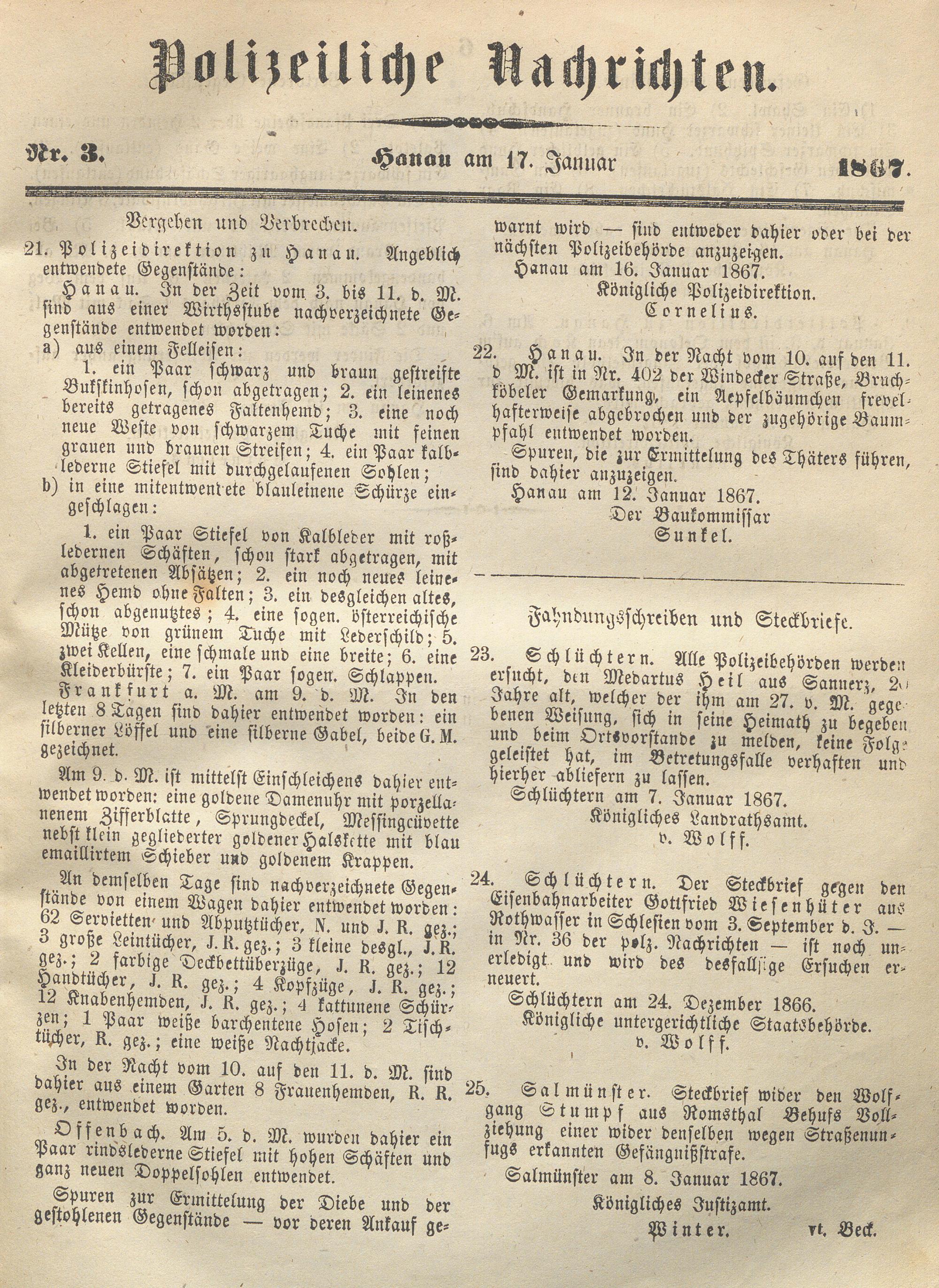 Wochenblatt für den Regierungsbezirk Hanau. 1866-1867