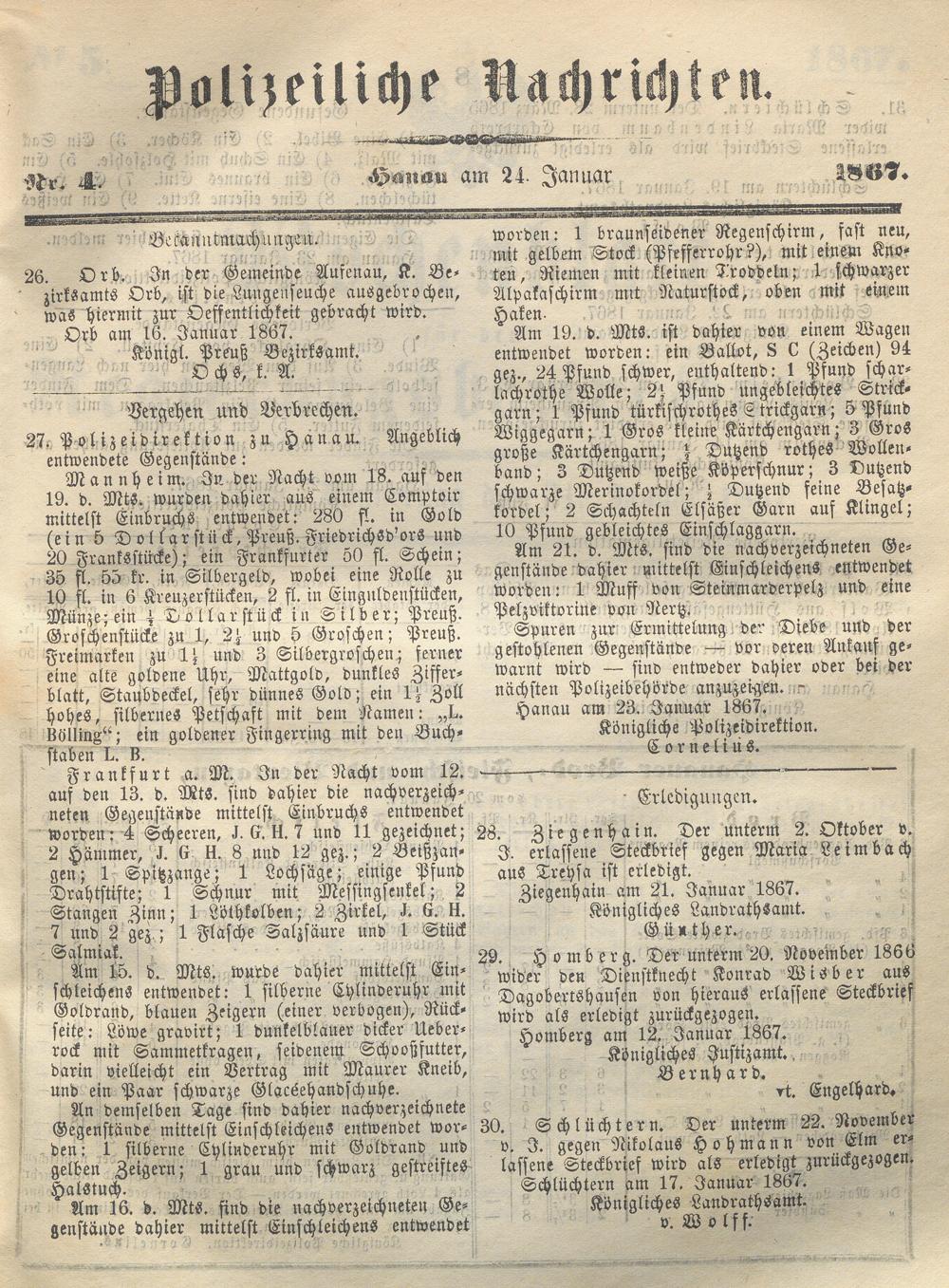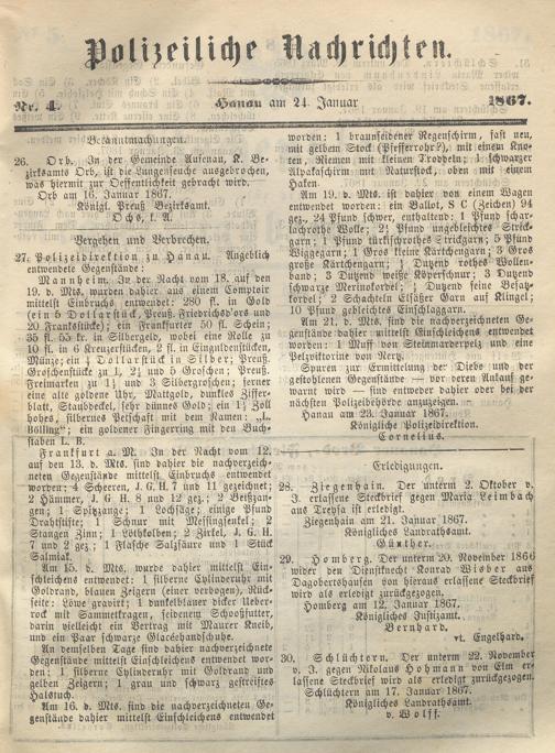 Wochenblatt für den Regierungsbezirk Hanau. 1866-1867