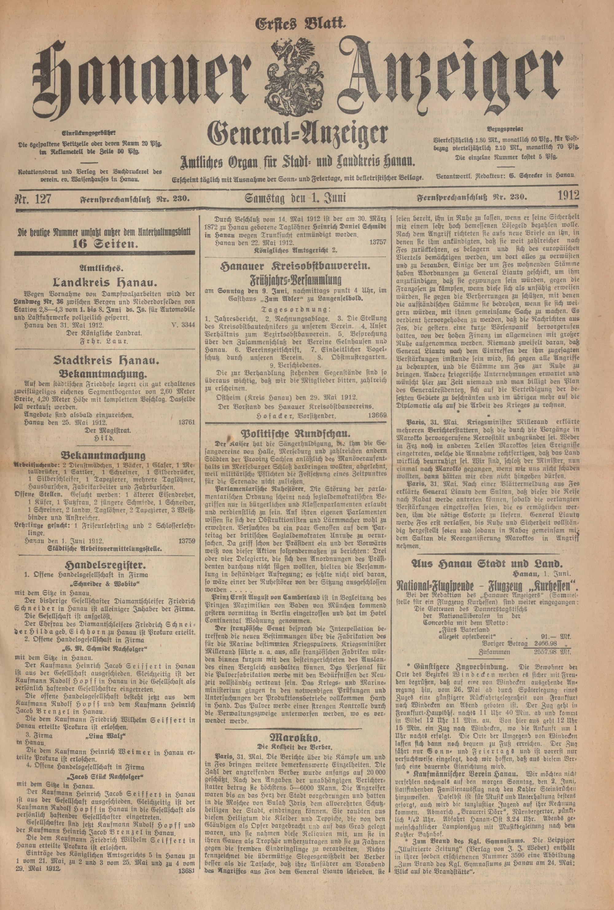 Hanauer Anzeiger. 1872-1941