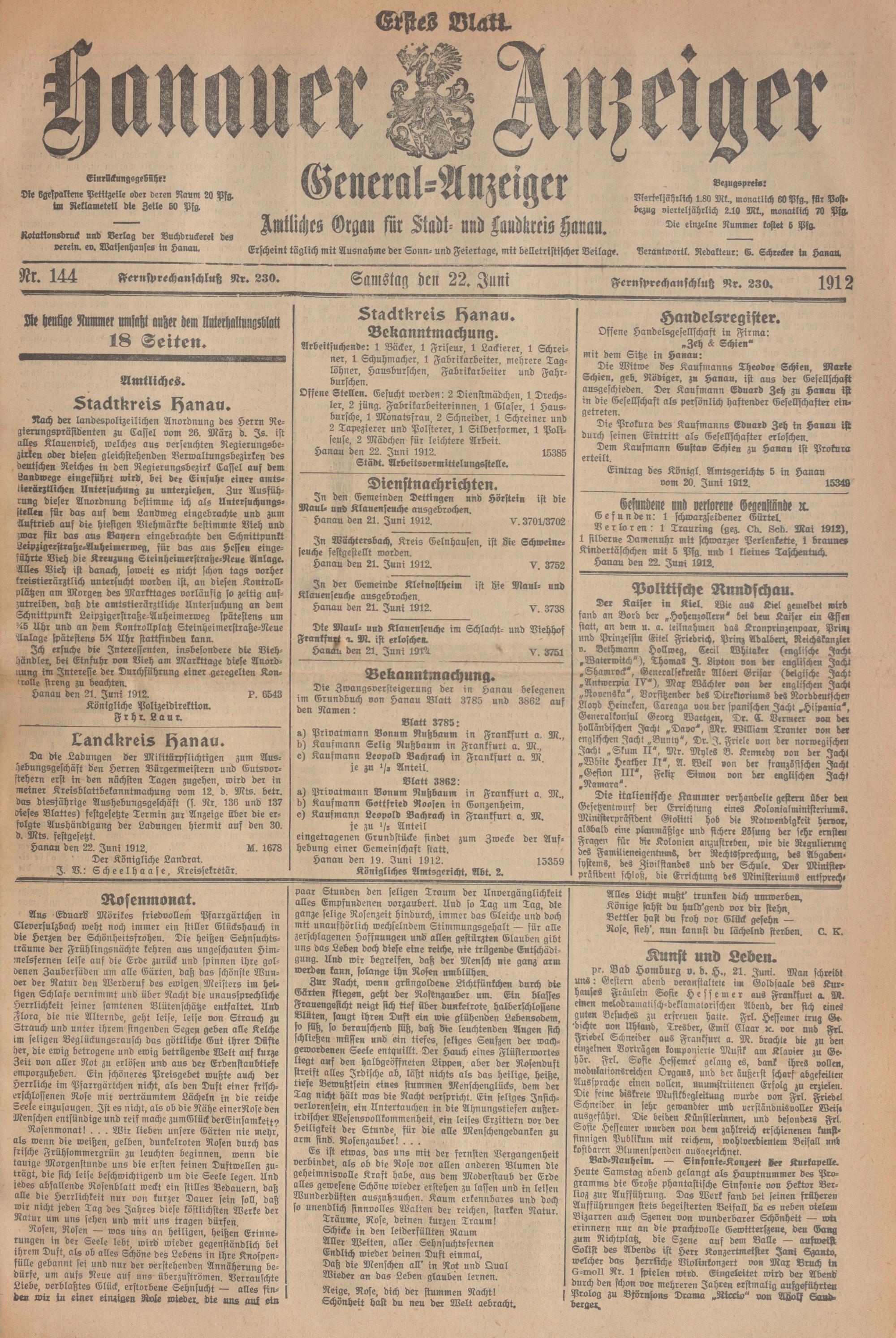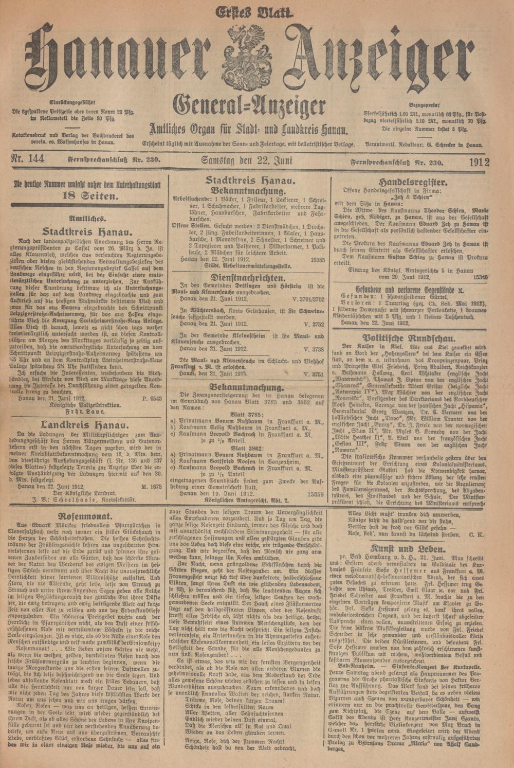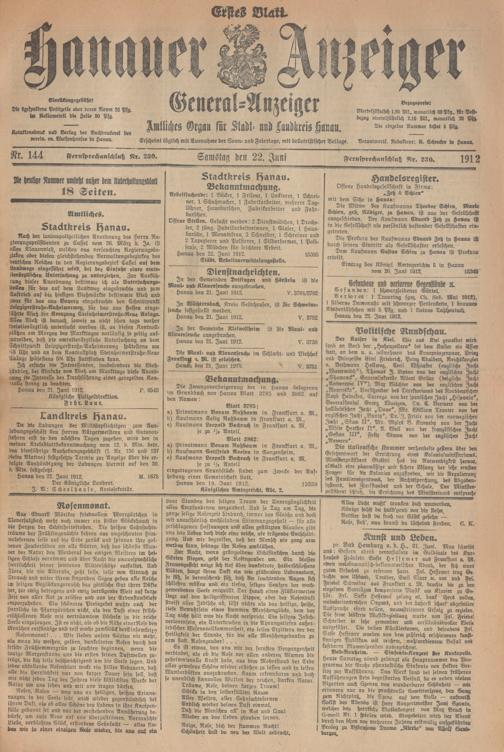 Hanauer Anzeiger. 1872-1941