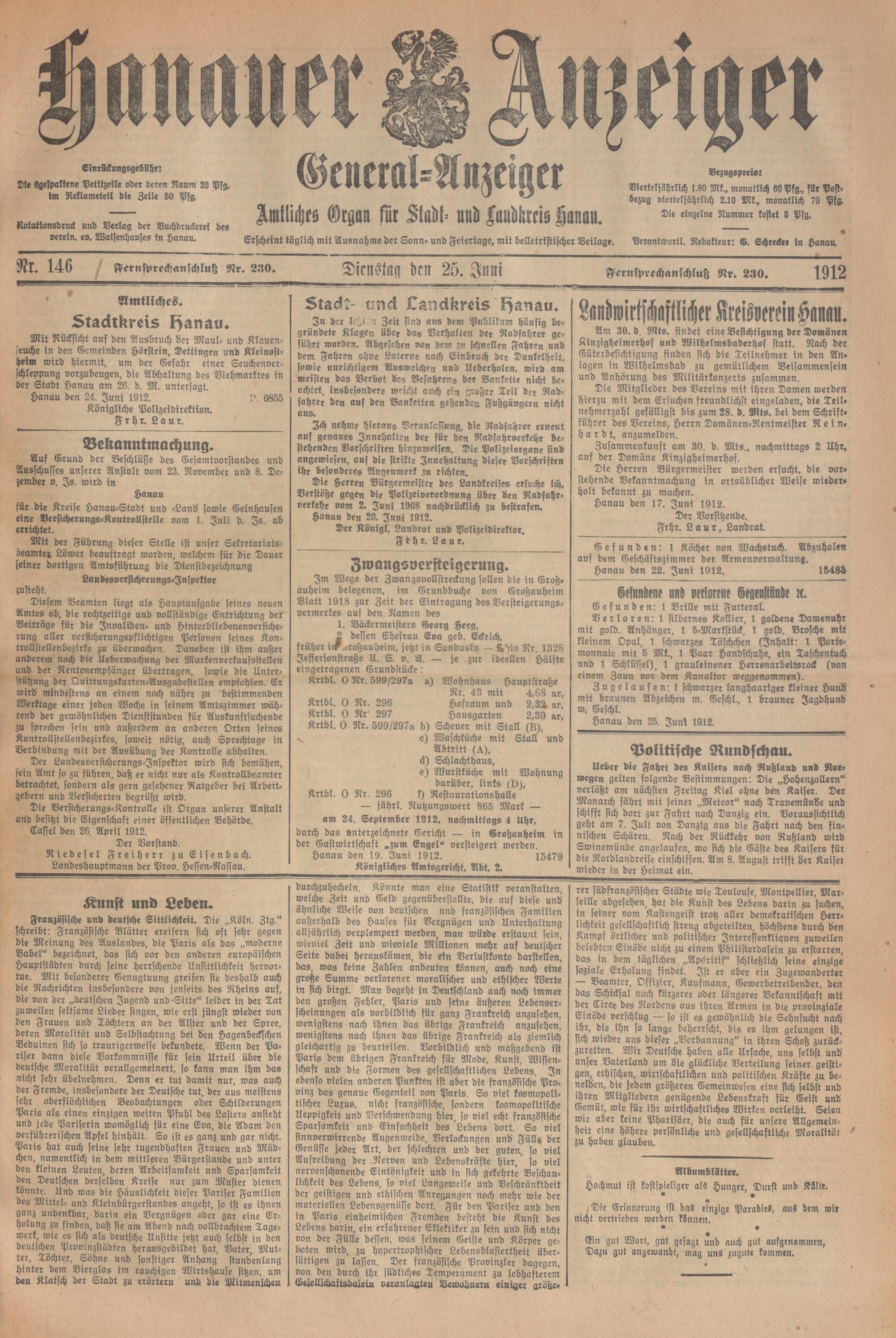 Hanauer Anzeiger. 1872-1941