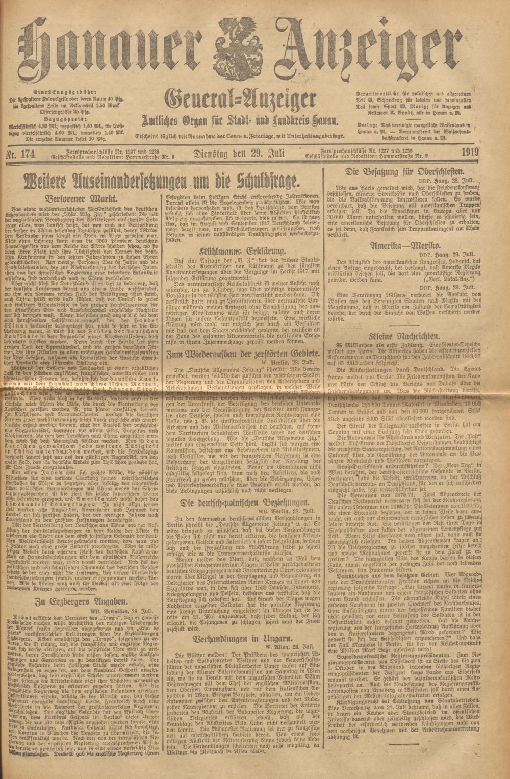 Hanauer Anzeiger. 1872-1941