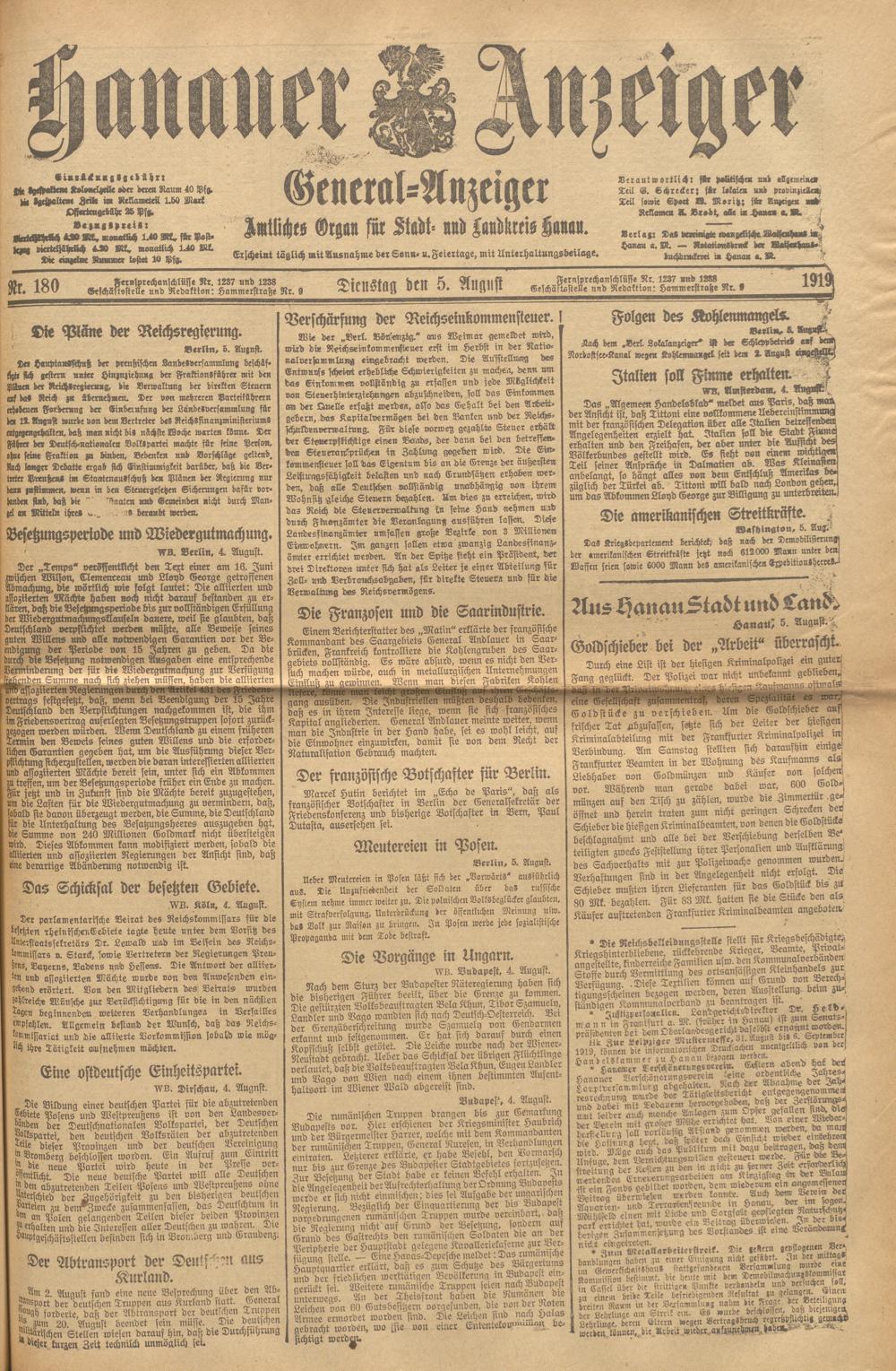 Hanauer Anzeiger. 1872-1941