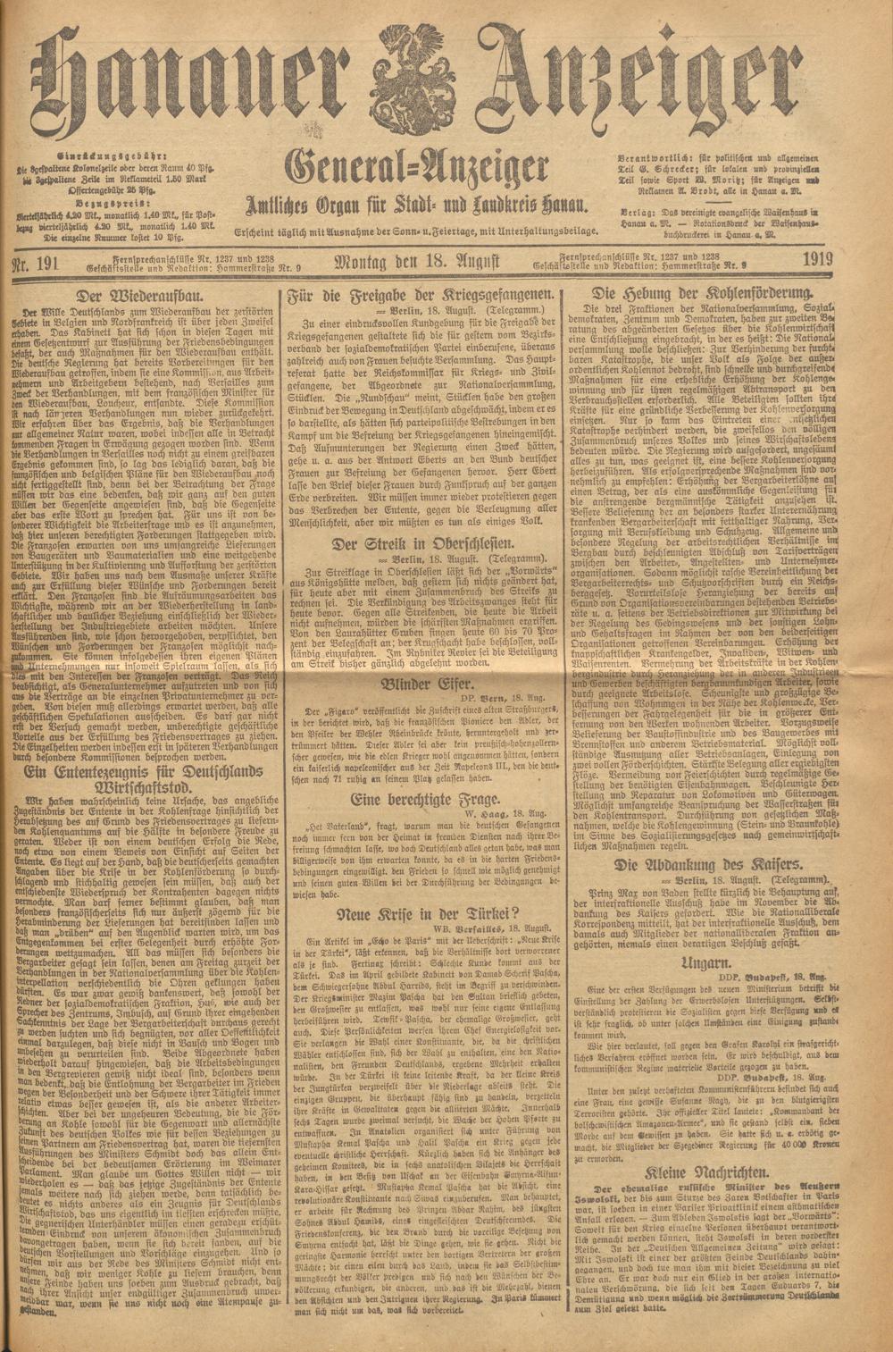 Hanauer Anzeiger. 1872-1941