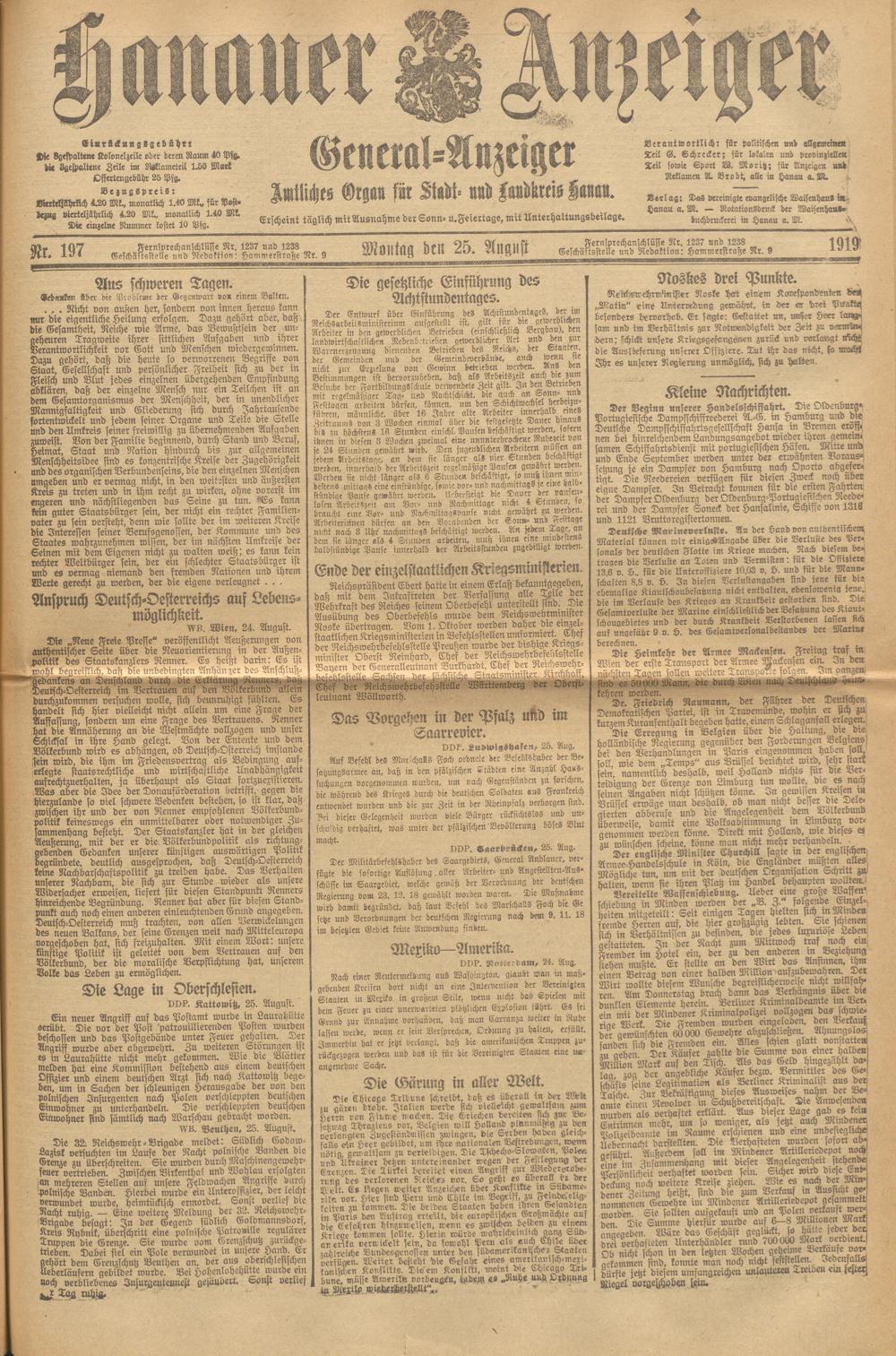 Hanauer Anzeiger. 1872-1941