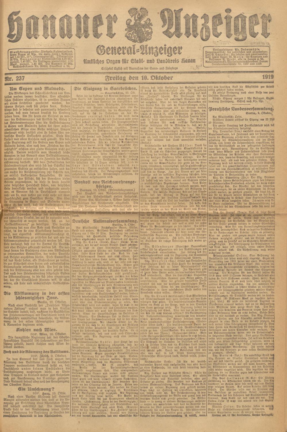Hanauer Anzeiger. 1872-1941