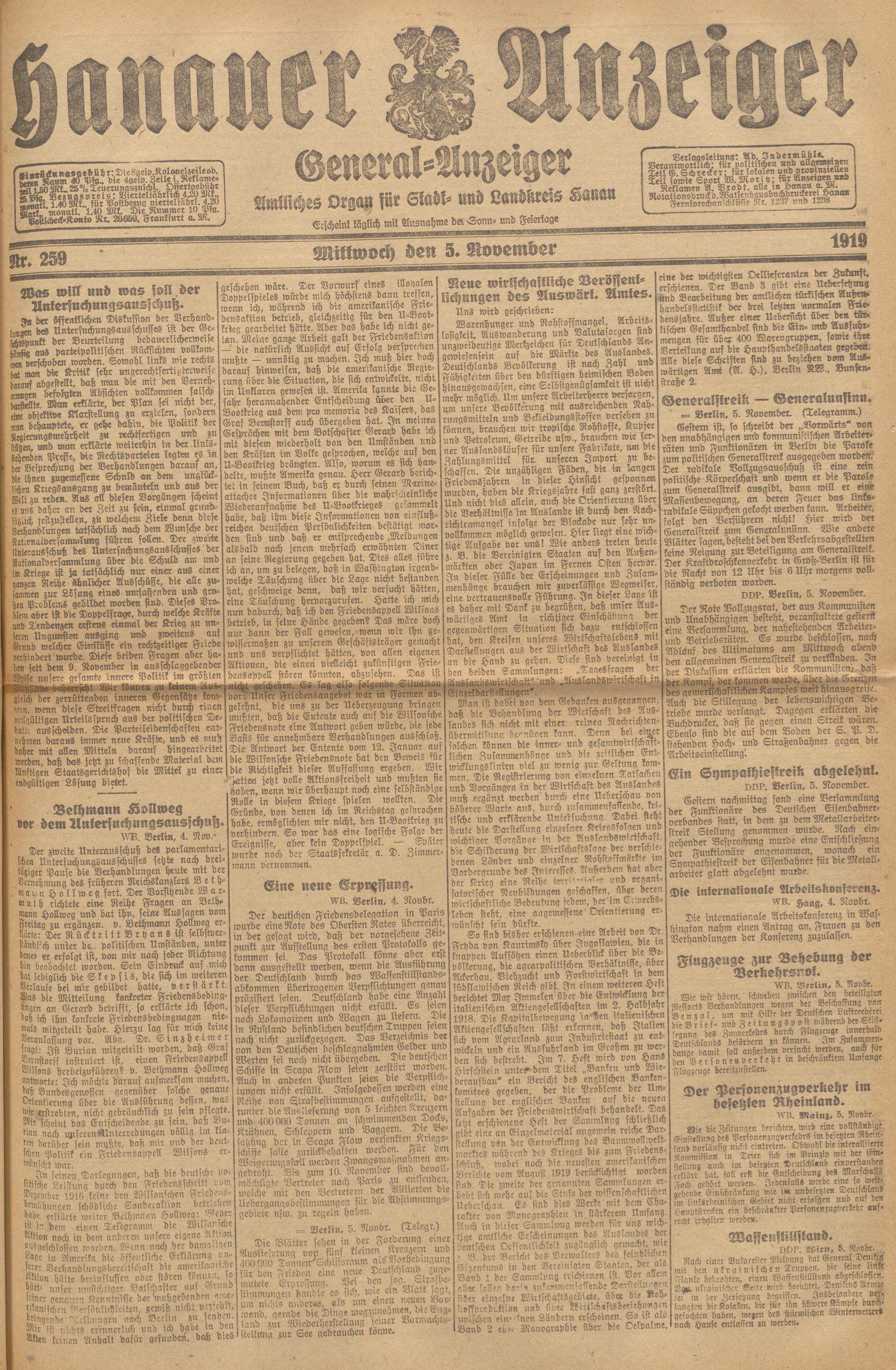 Hanauer Anzeiger. 1872-1941