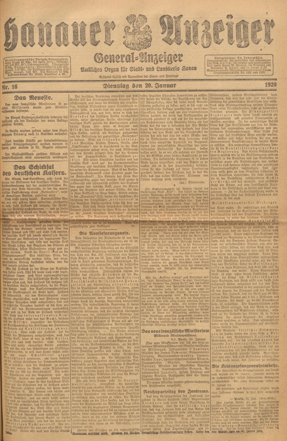 Hanauer Anzeiger. 1872-1941