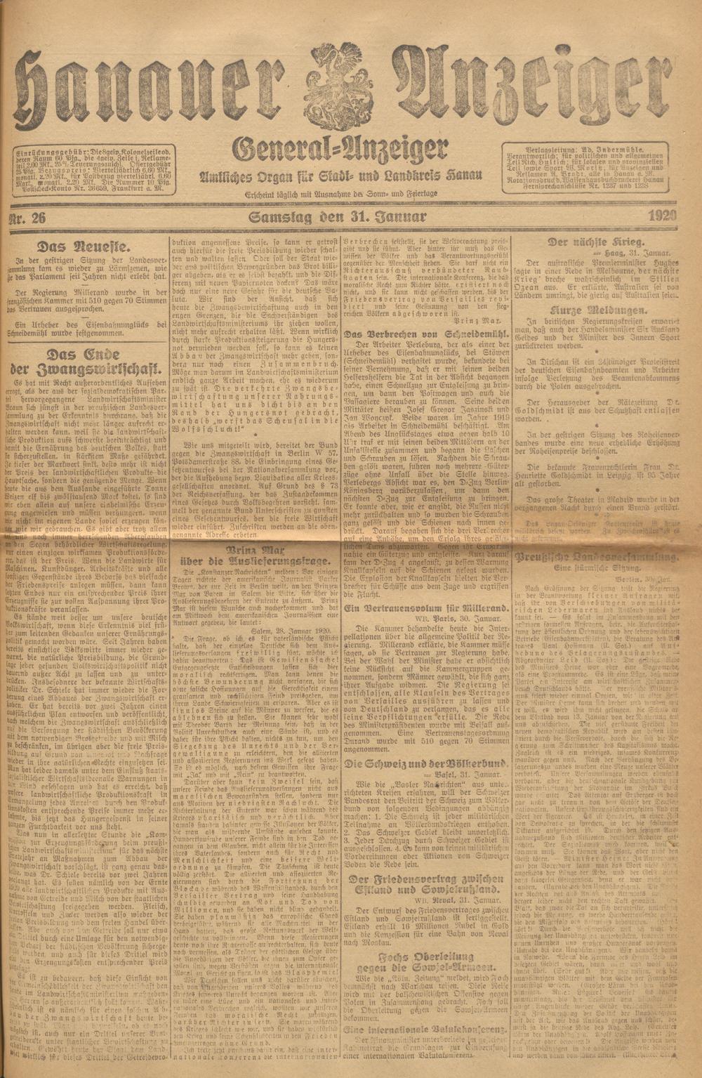 Hanauer Anzeiger. 1872-1941